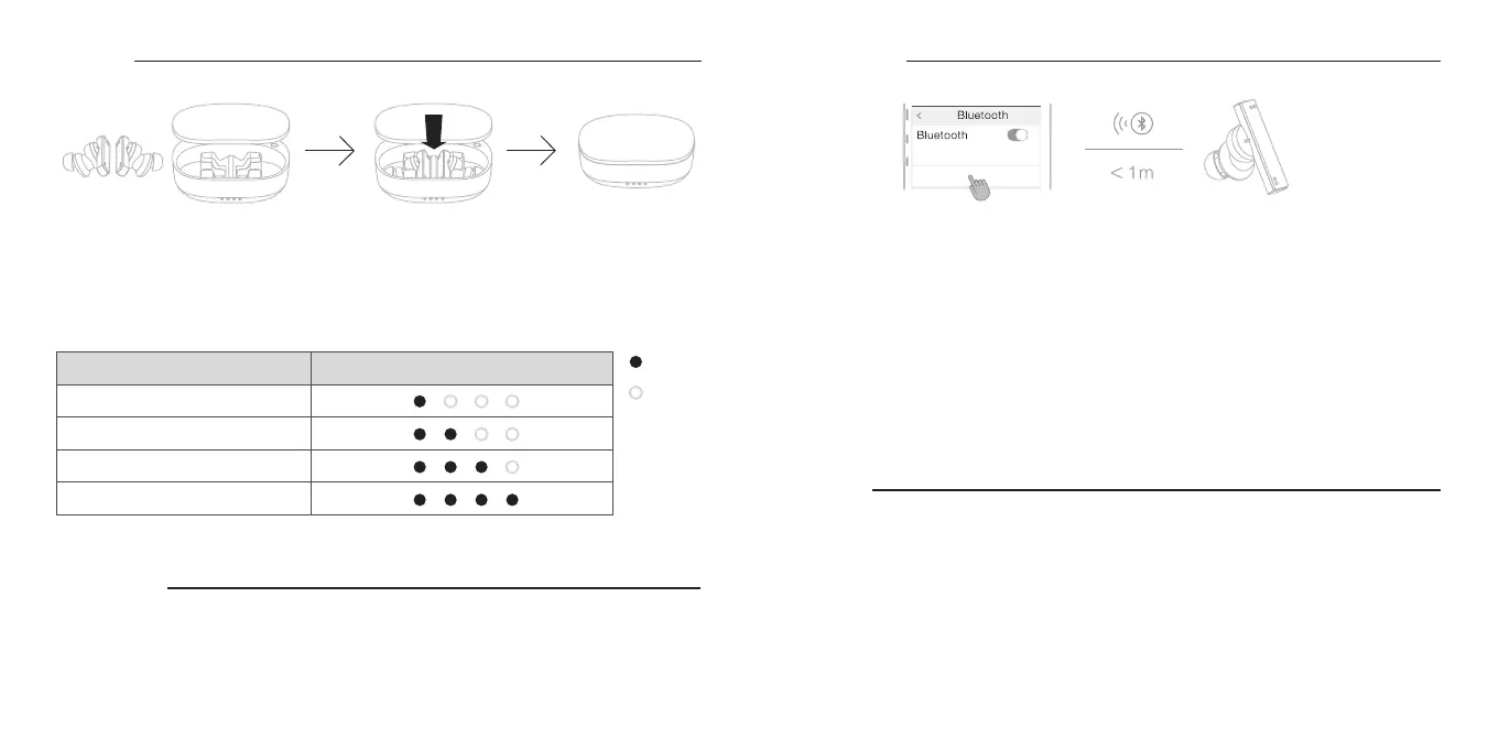 将本机置入充电盒中,耳机的电源会自动关闭,随之红色的 LED指示灯将亮起并开始进行充电。此时