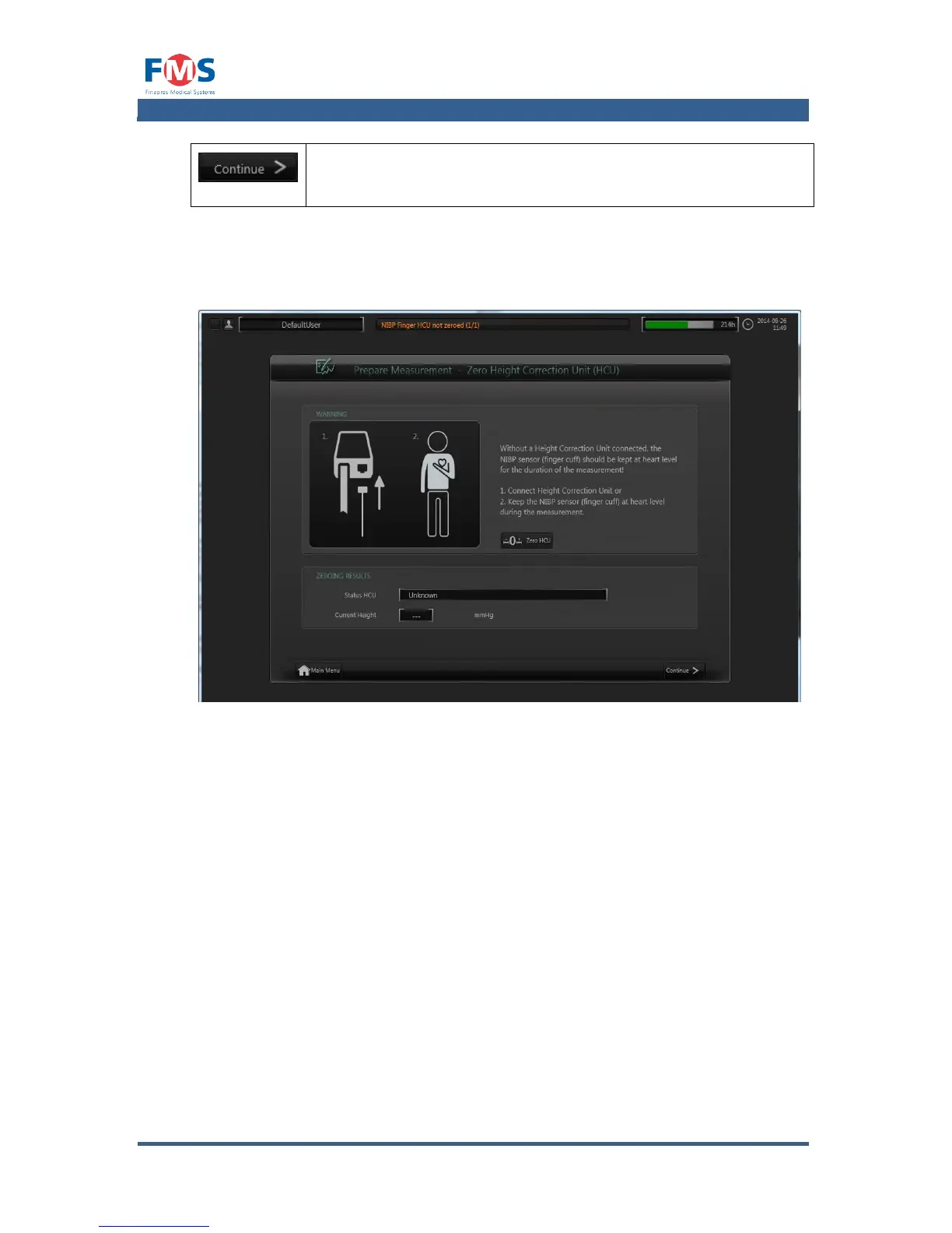 HEIGHT CORRECTION UNIT (HCU)” screen will instruct the user to keep the hand
