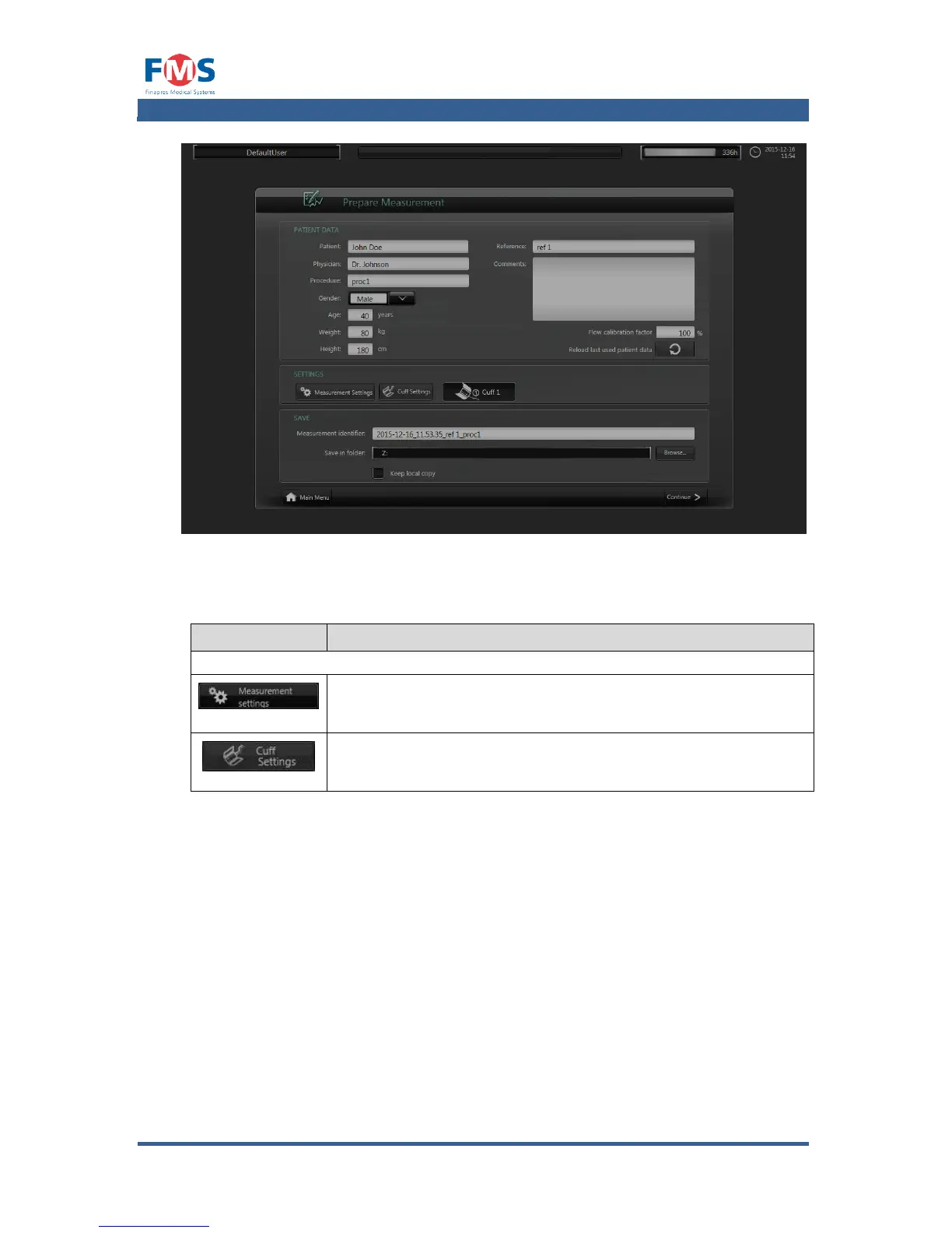The elements of the second “PREPARE MEASUREMENT” screen have the following