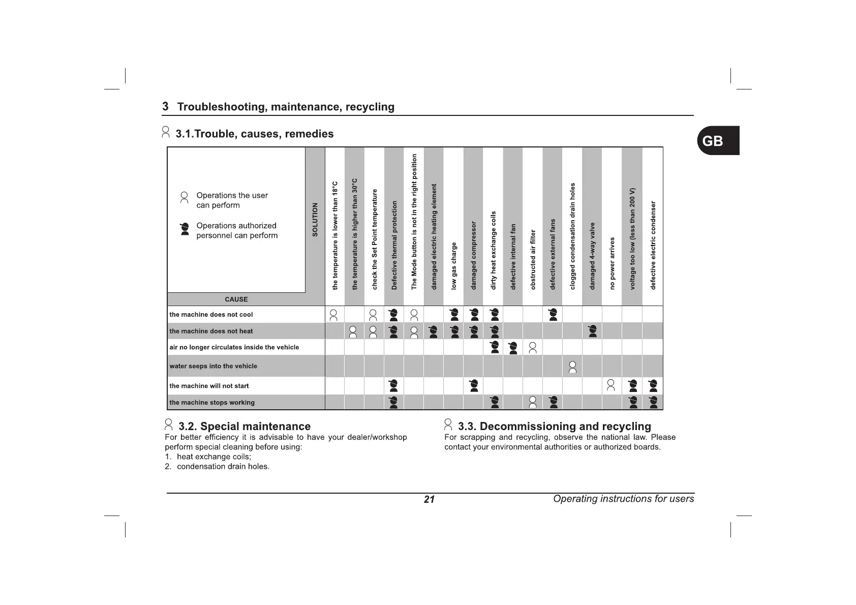 Finch HB 9000 - Troubleshooting and Maintenance; Trouble Causes and Remedies; Special Maintenance Recommendations