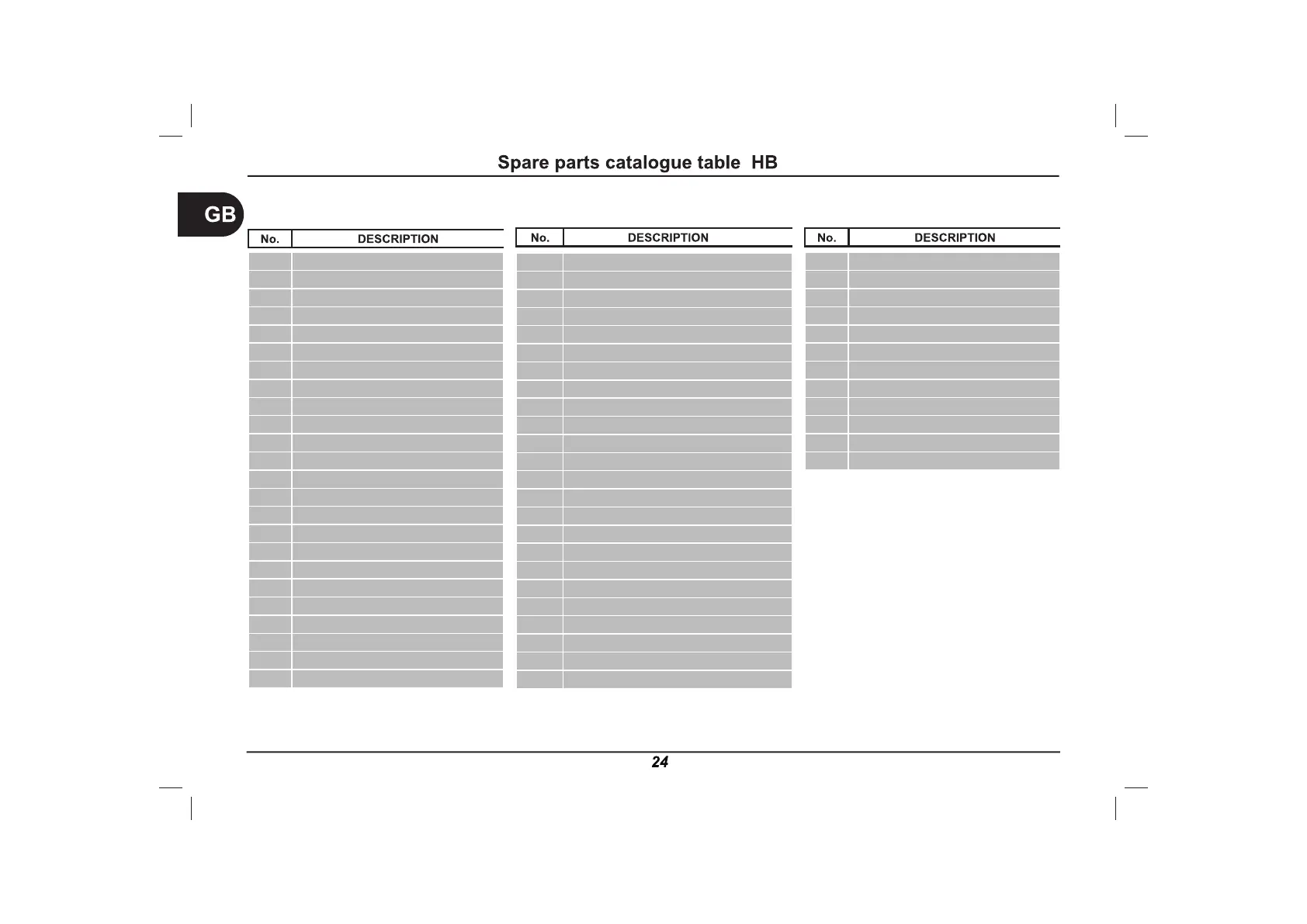 Finch HB 9000 - Spare Parts List; Detailed Spare Parts Description