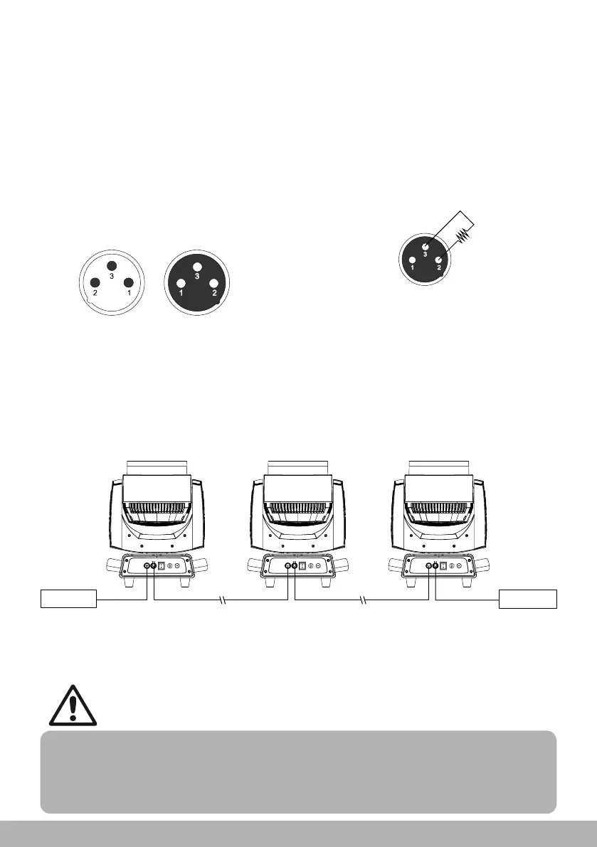 3-pin or 5pin XLR connecters are provided for fixture DMX input and output. Pin 1 is