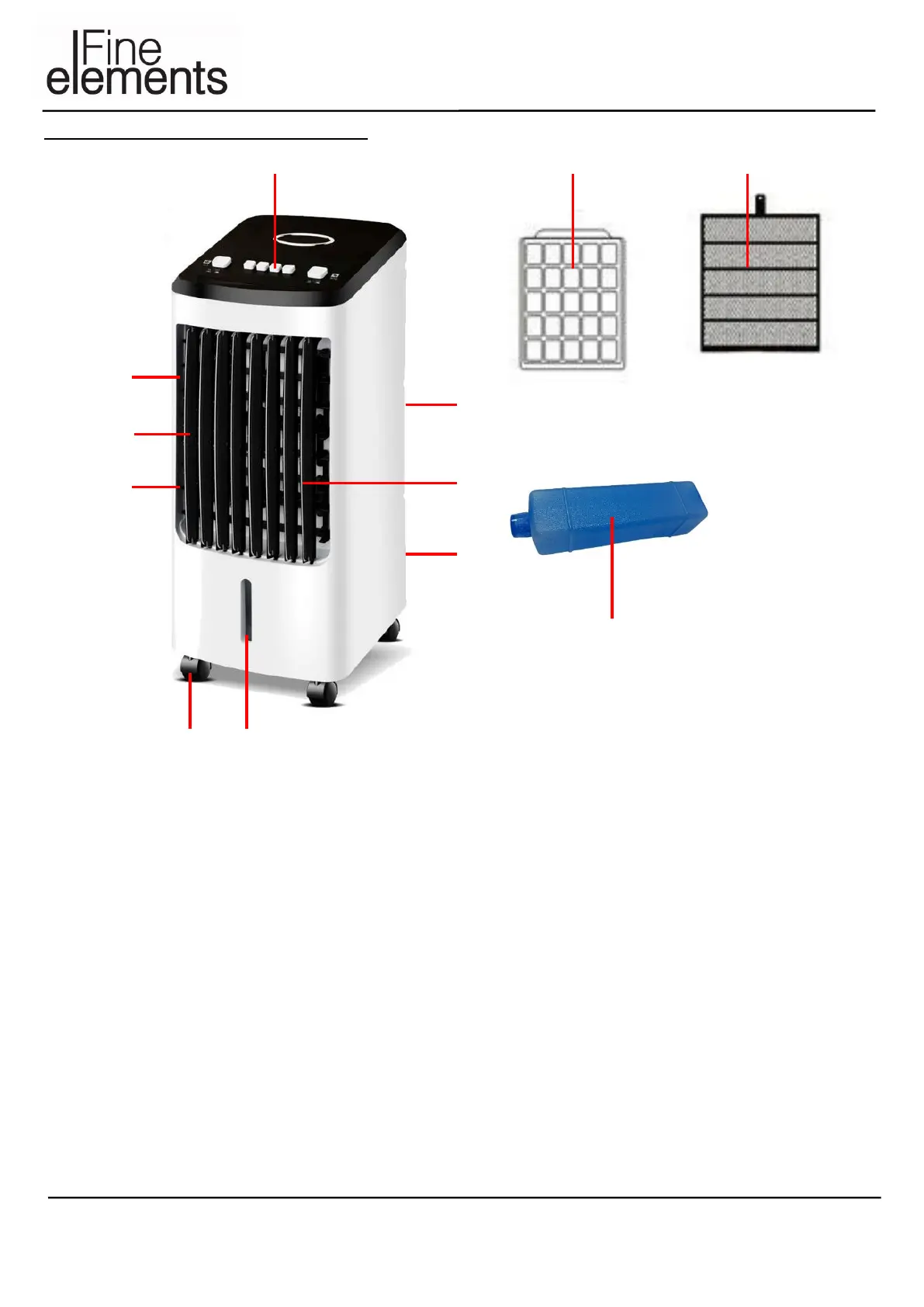 Fine elements COL1538 - Description of Parts - Overview; Control Panel; Air Filter (Rear); Cooling Pad (Rear)