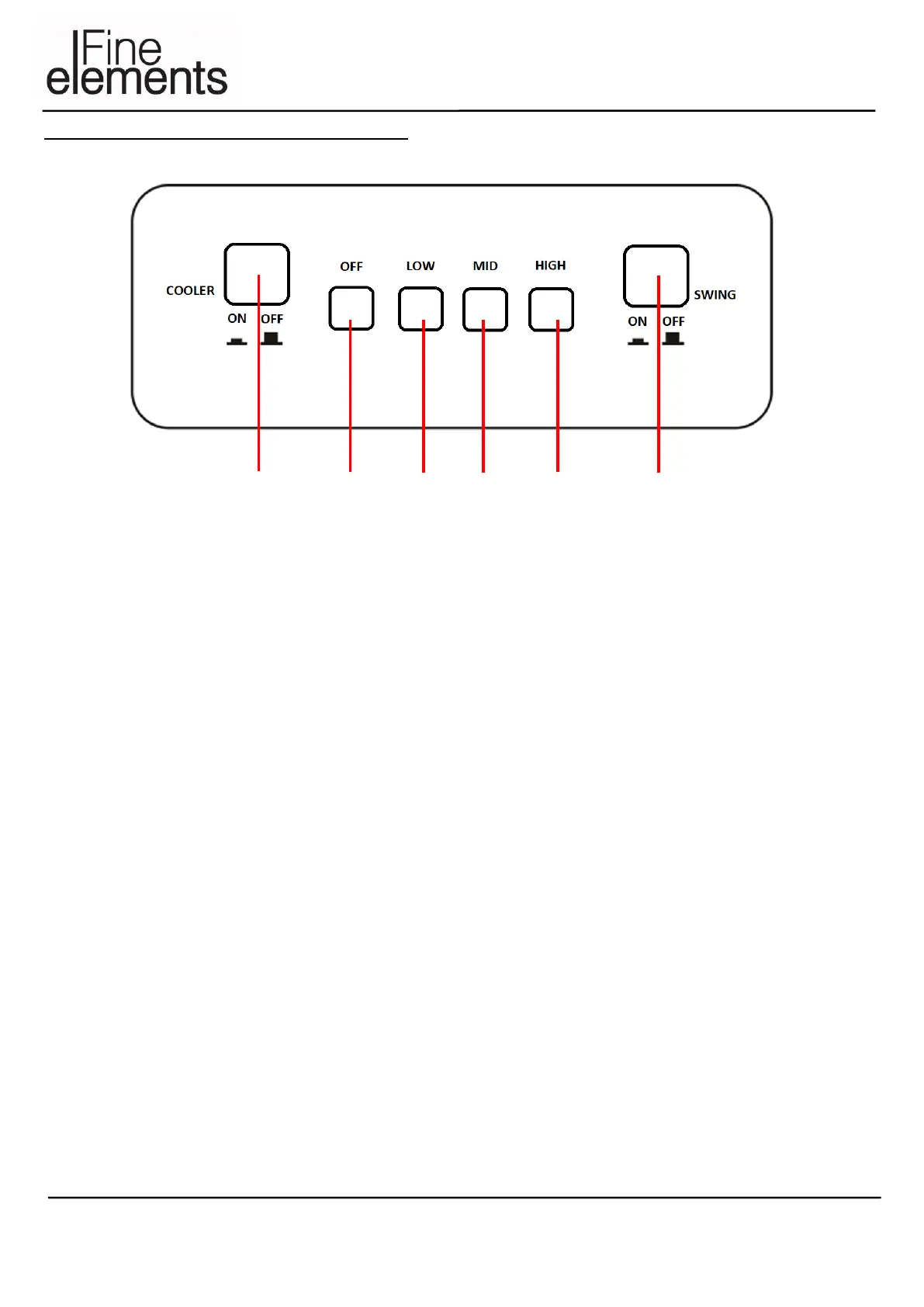 Fine elements COL1538 - Description of Parts - Control Panel; Cool On;Off Button; Fan Off Button; Low Fan Speed