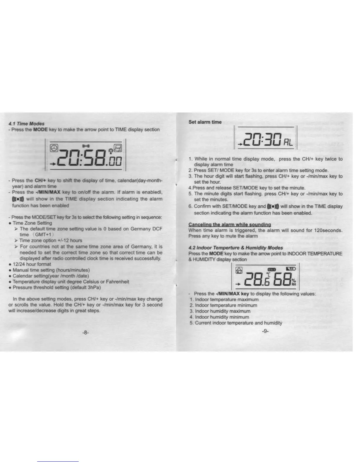 Fine offset 1280 - Remote Sensor Mounting; Program Mode; Time Modes; Indoor Temperature & Humidity Modes