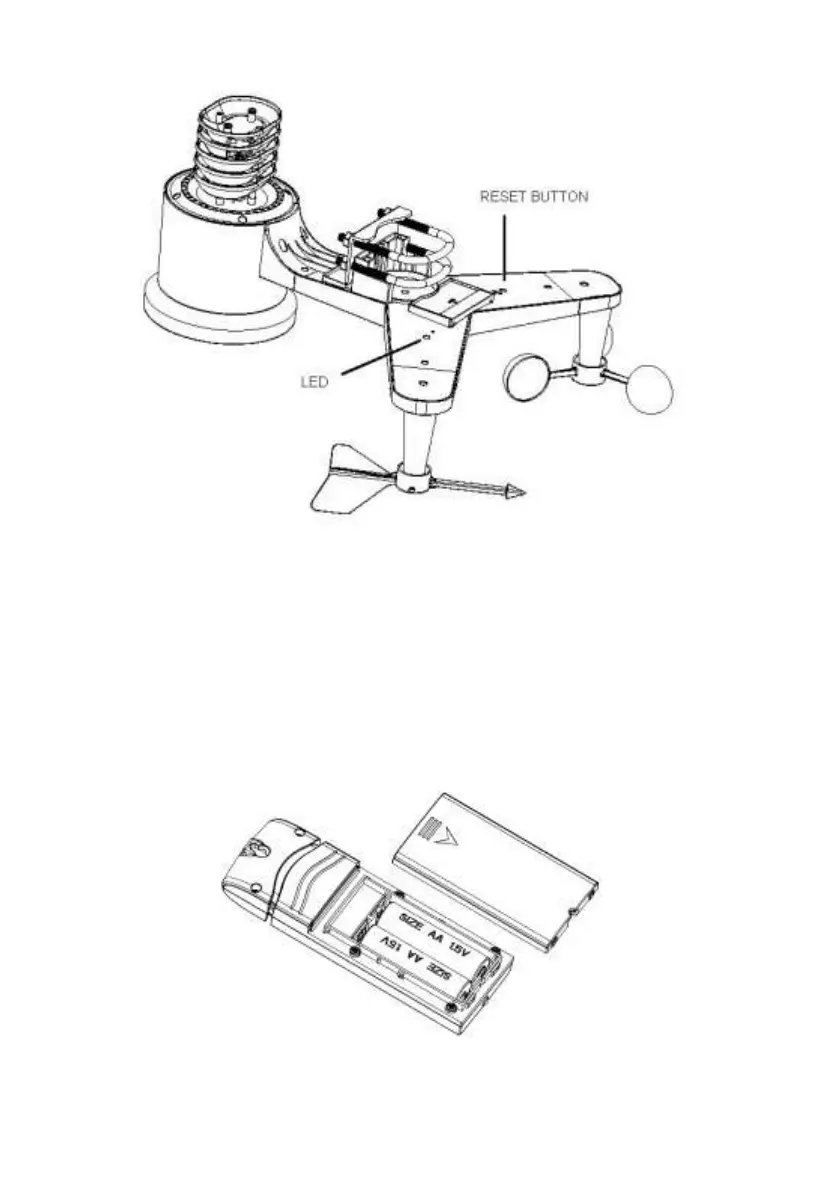 Figure 10: Reset button and Transmitter LED location
