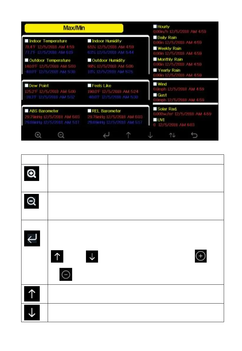 key to popup Message Box ”Clear the Max/Min record?”. Press
