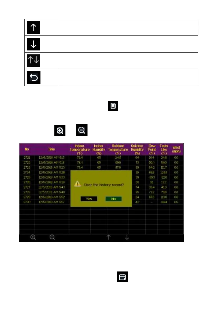 “Clear the history record?” Press “Yes” to clear all history records saved on