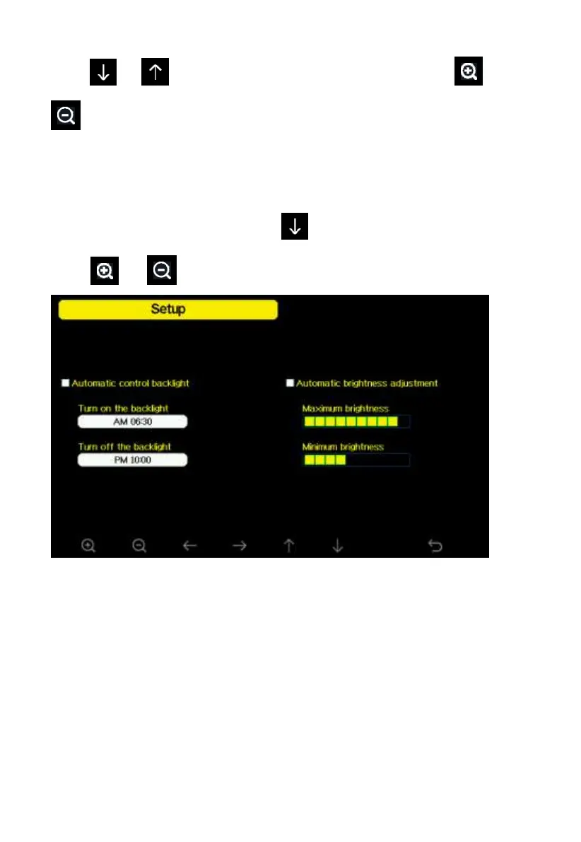 While in Menu Setting Mode, press key to select Backlight Setup field,