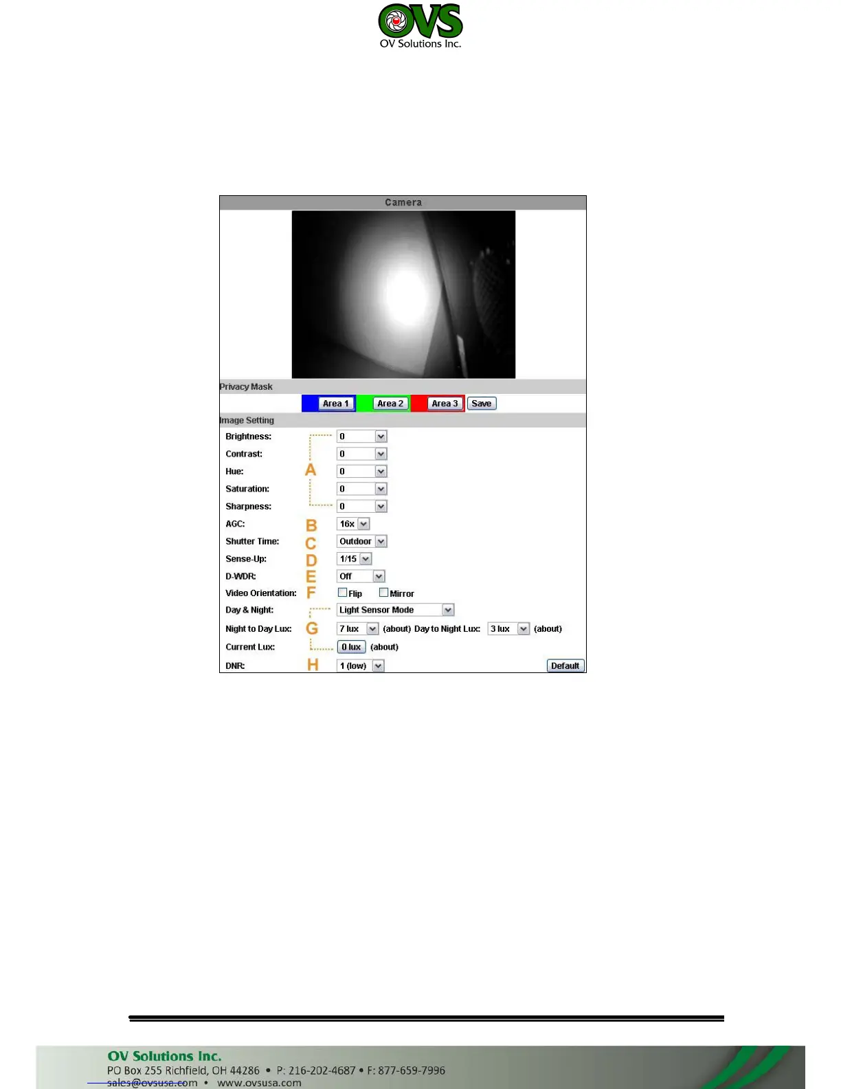 e. WDR : Enable the function to reduce the contrast of background with