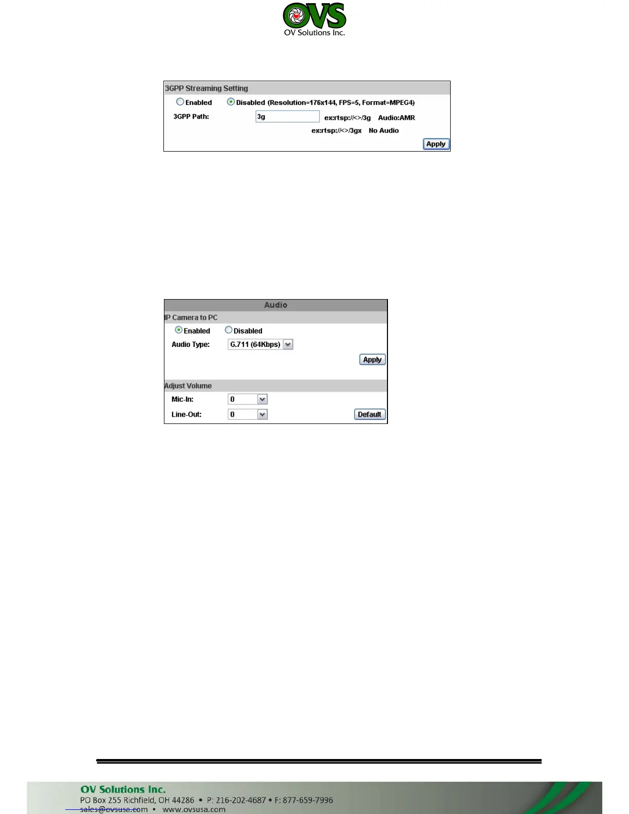 a. Audio from IP camera built-in mic to local PC: select “Enable” to start this
