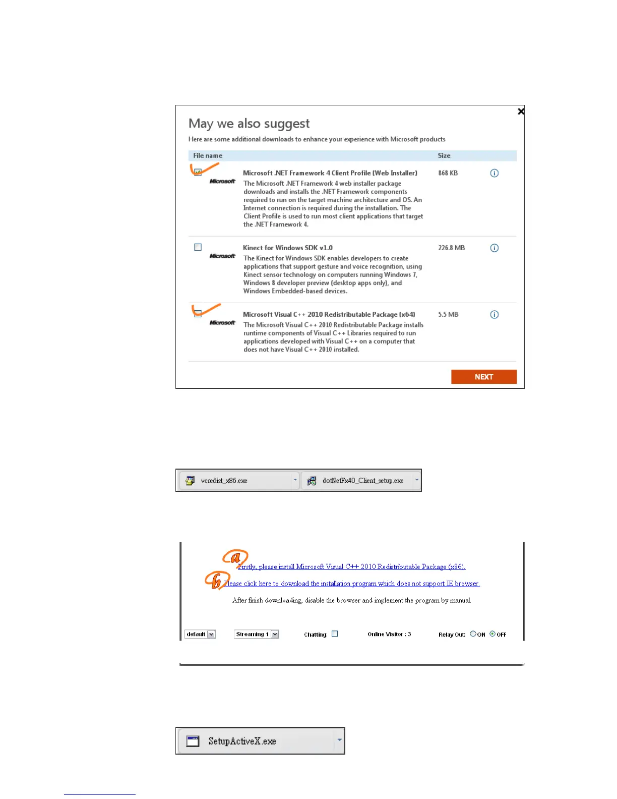 After finishing downloading, execute the files to install ActiveX. Then