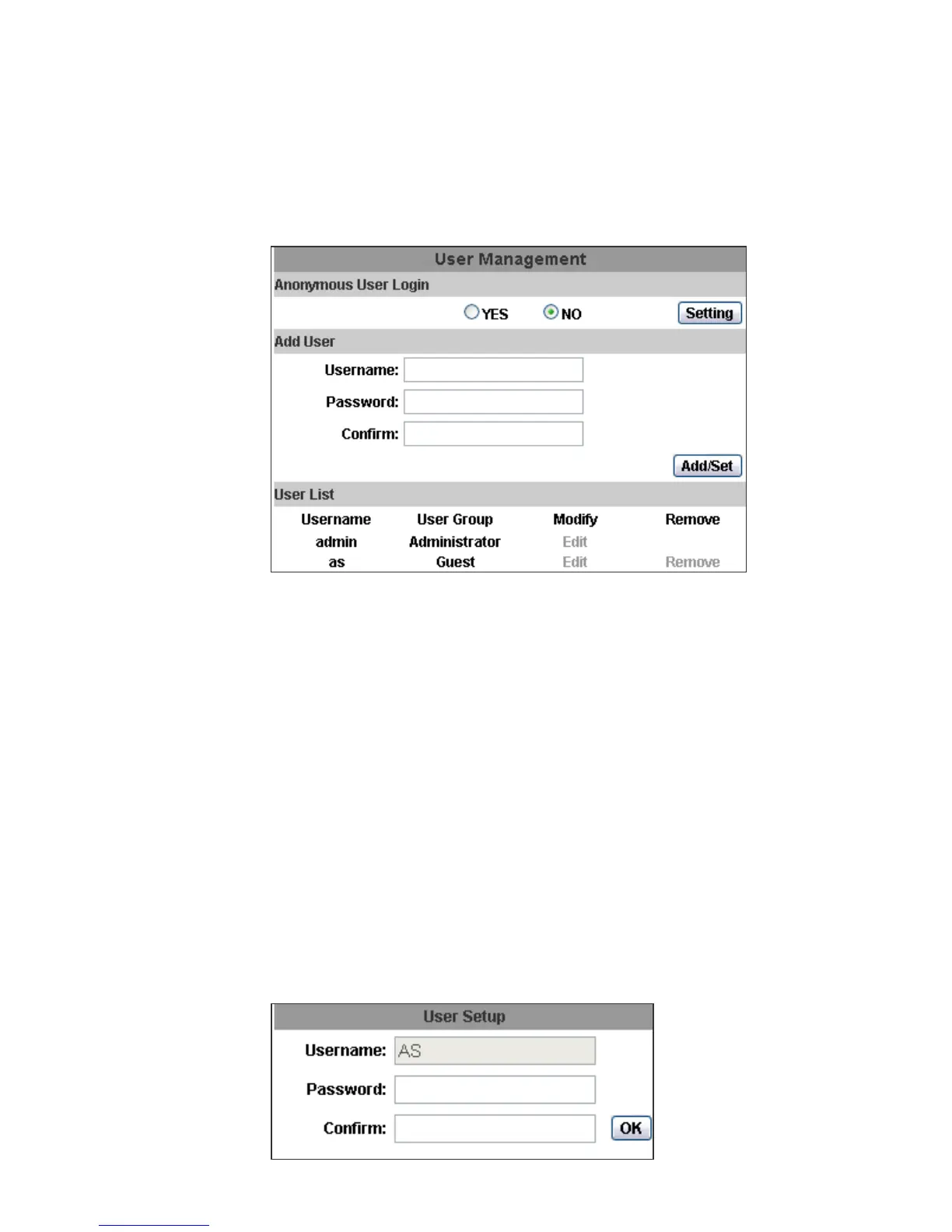 Type the user name and password, then click “Add/Set”.The guest user