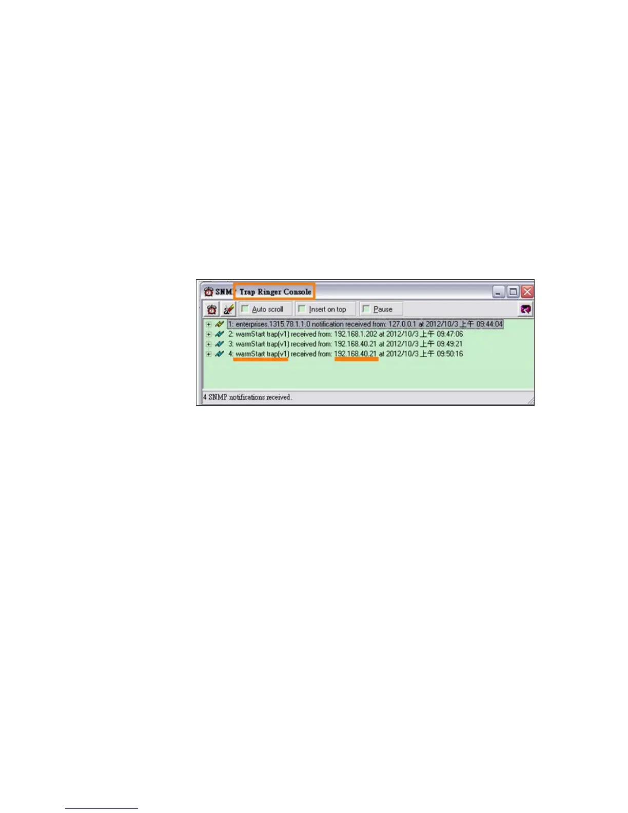 Browser(192.168.40.159) will receive the trap message of “setting
