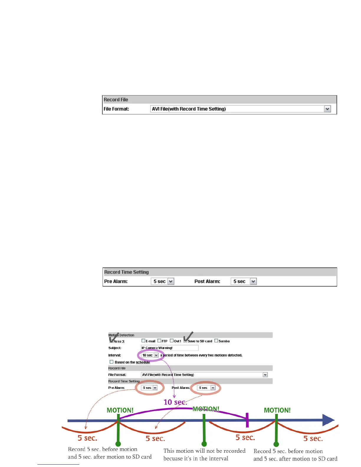 • Diagram example of "Interval" and "Pre/ Post Alarm":