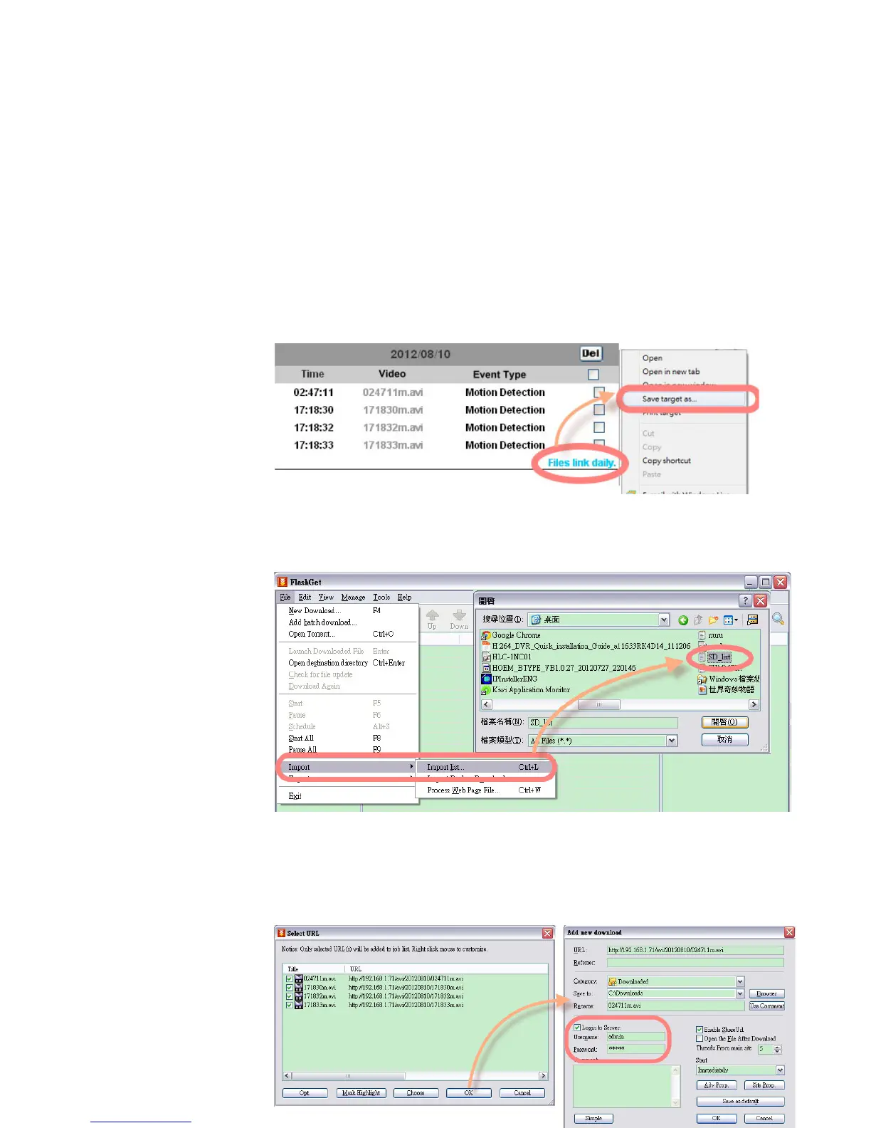 (iii) FlashGet will show you the link list, and you can tick the files you