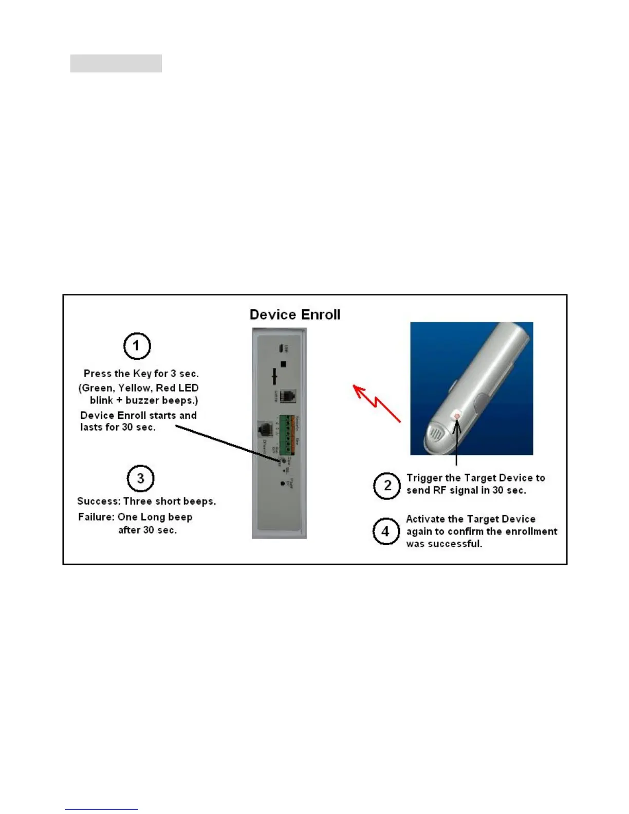 Note: Beware of not to activate any other sensors during the 30 seconds Device Enroll time.