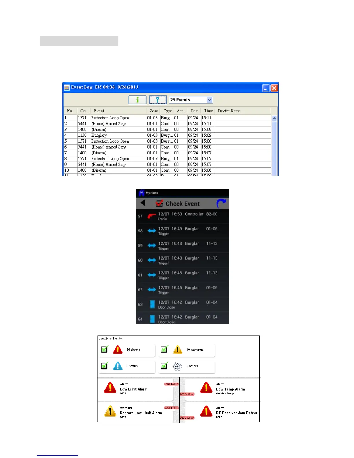 6.1 Event Log: The Base Unit can store 512 event records in its memory. These events can be checked