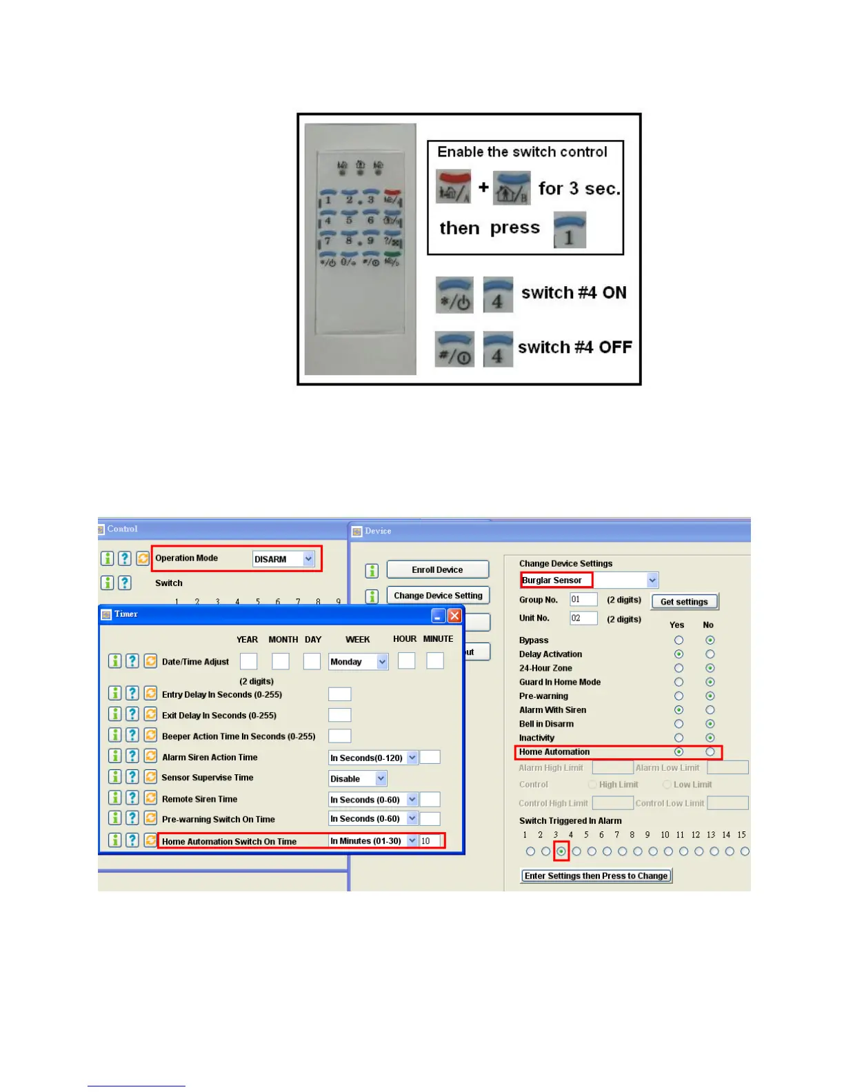 7.4, Automatic controlled by Burglar Sensors with “Home Automation=Yes” in Disarm Mode.