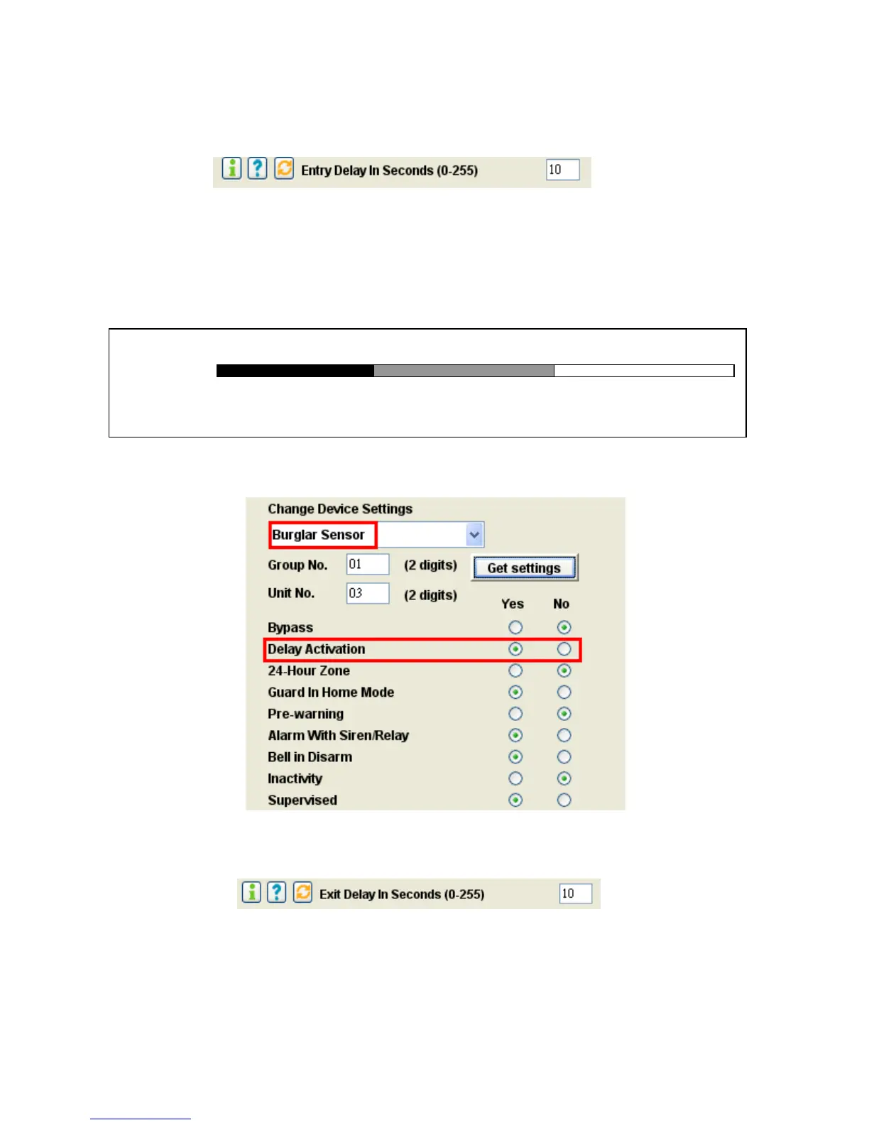 *Entry Delay ( For Burglar Sensor only, 0-255 seconds, default =10 sec.)