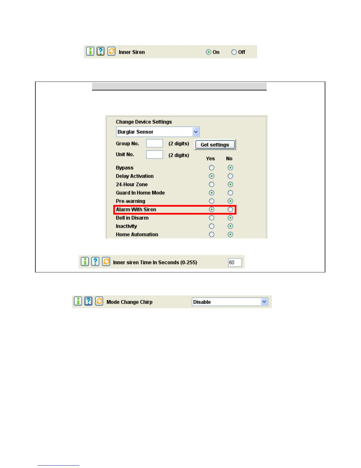 Inner Siren Off: Switch off the Inner Siren. (The Siren keeps silent in alarm and warning states.)