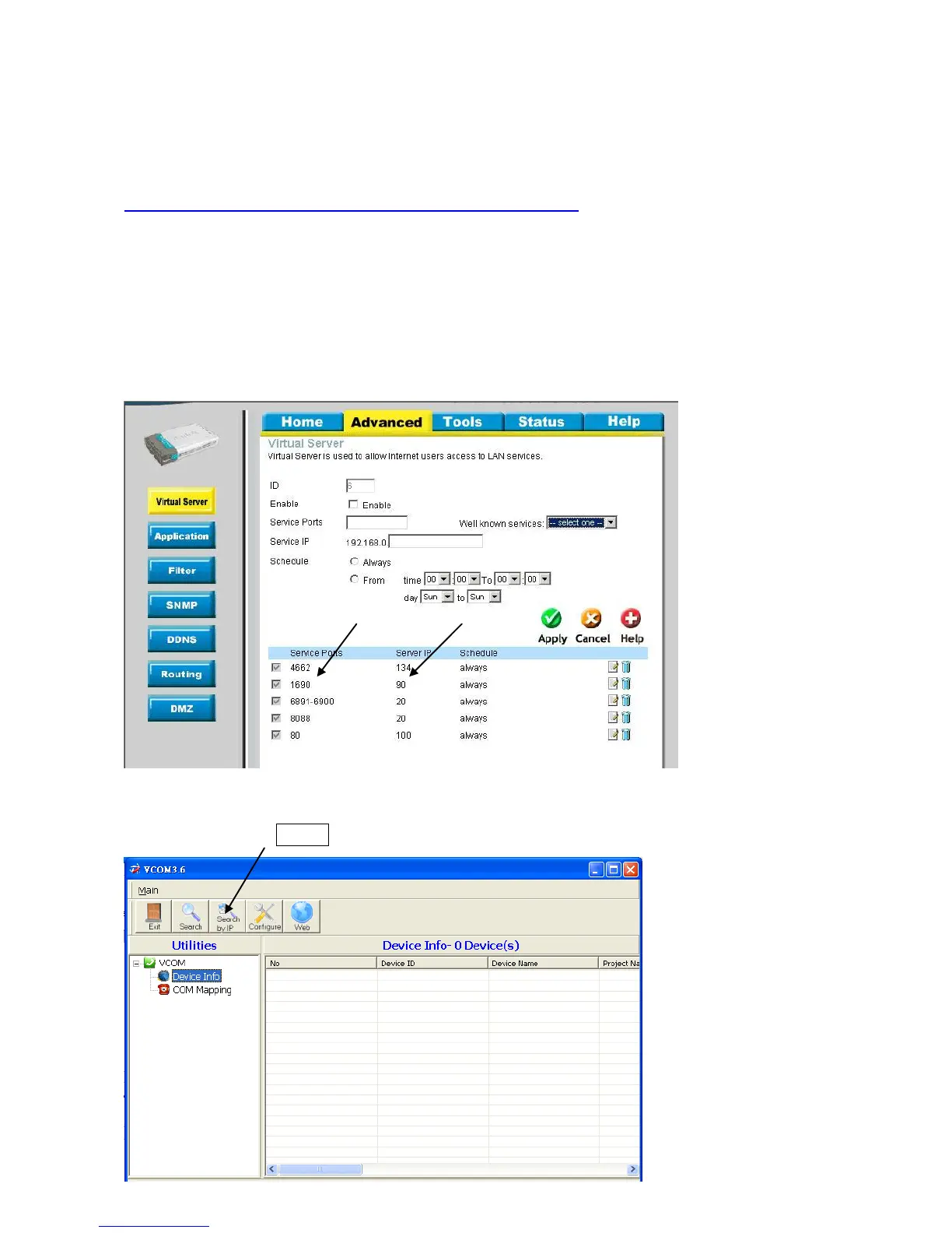 Ex: The internal IP address of 192.168.0.90 and port number 1690 is assigned in the Virtual Server