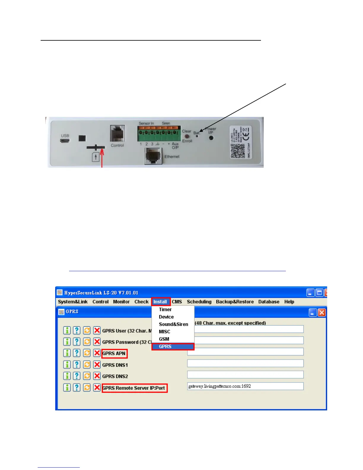 GPRS APN, GPRS Remote Server IP: Port and CMS1&Server.