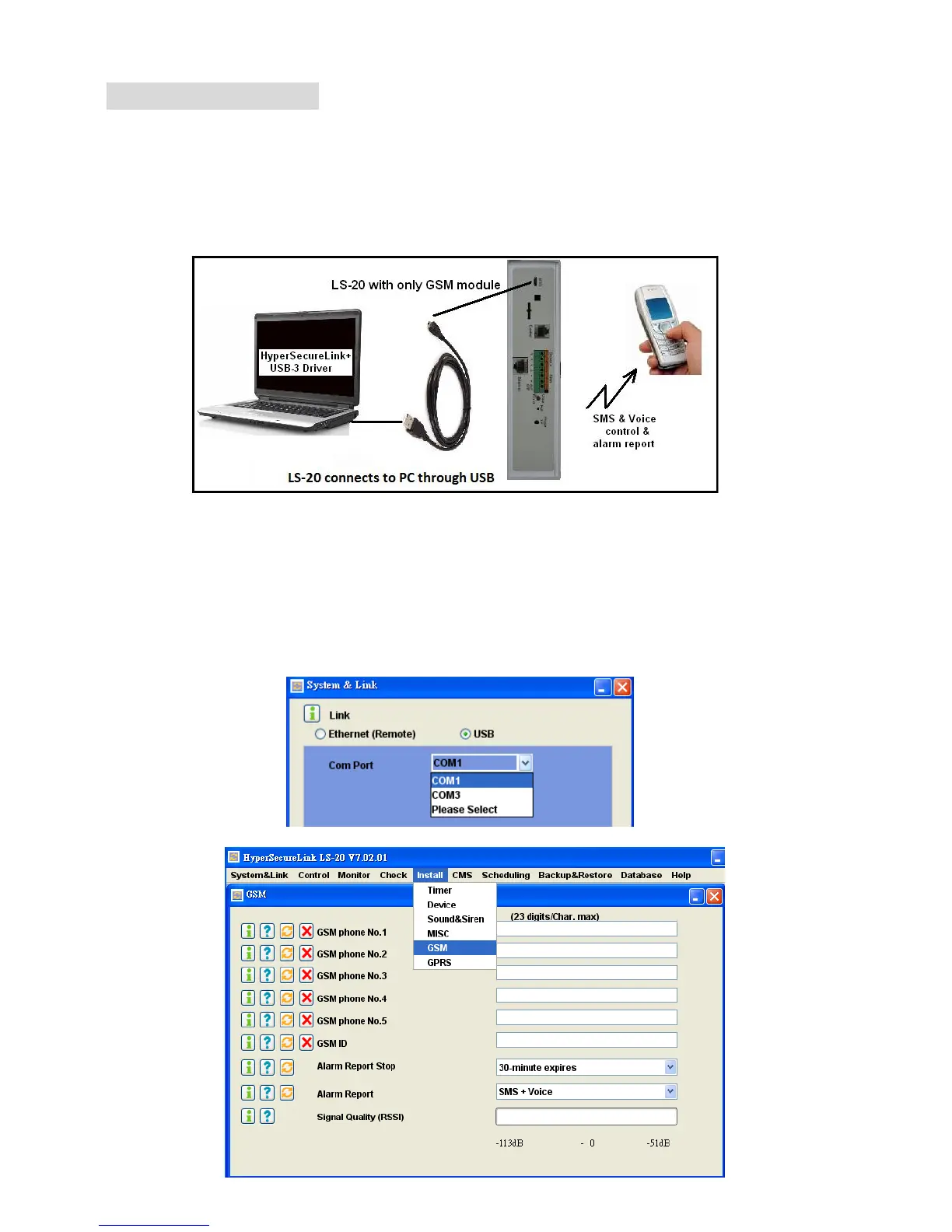 3.1 Programming the LS-20 through USB to connecting to GSM network.