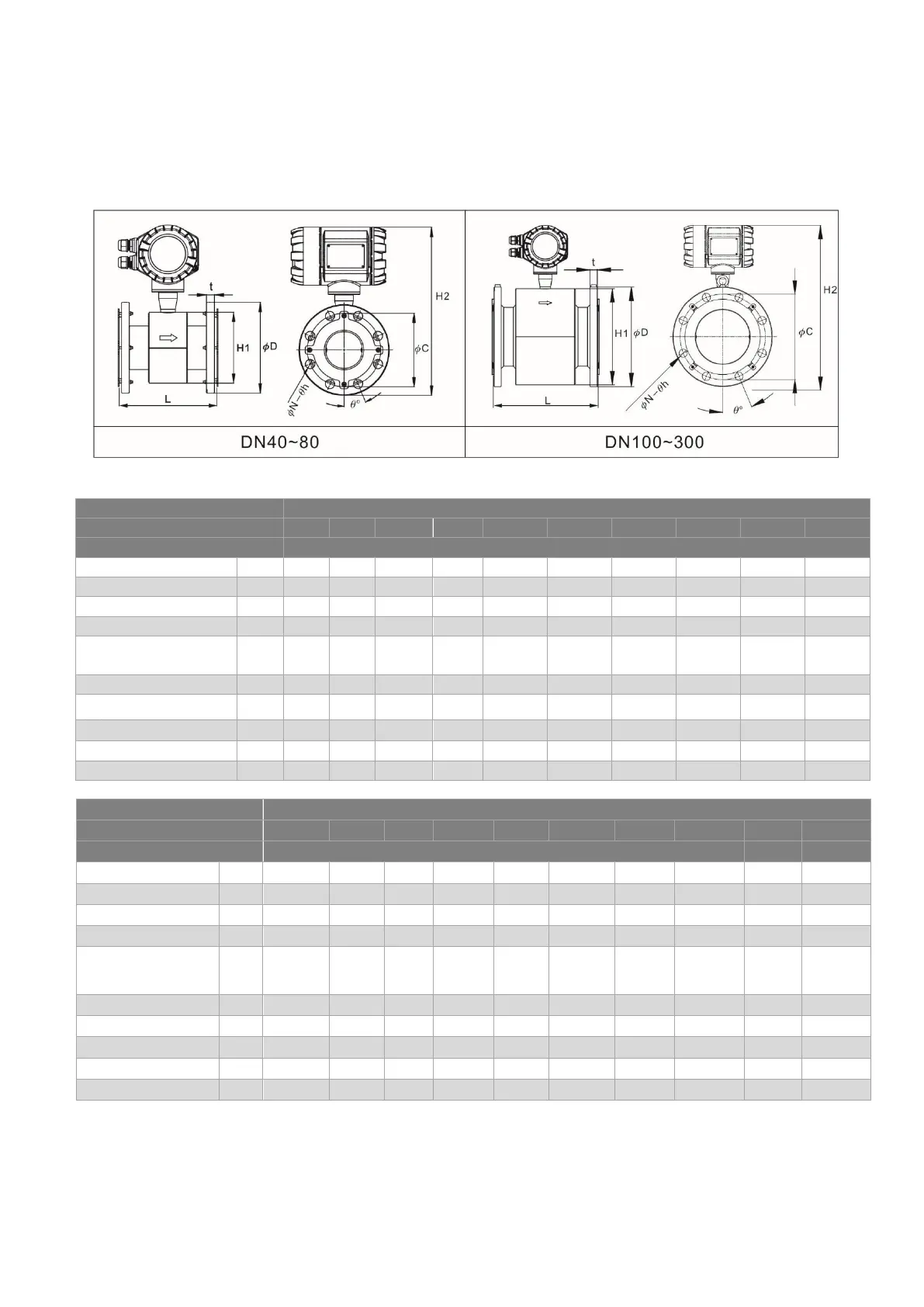 Remarks: For DN40~DN80, the lining protective ring is 2mm, so the total length of the flow meter shall be