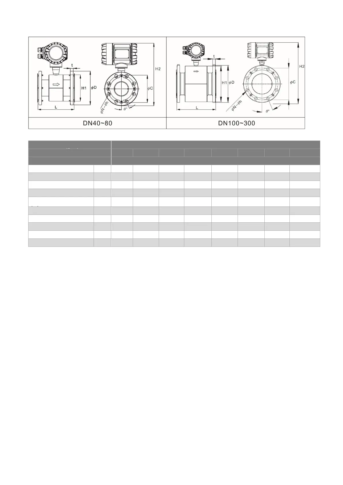 Remarks: For DN40~DN80, the lining protective ring is 2mm, so the total length of the flow meter shall be