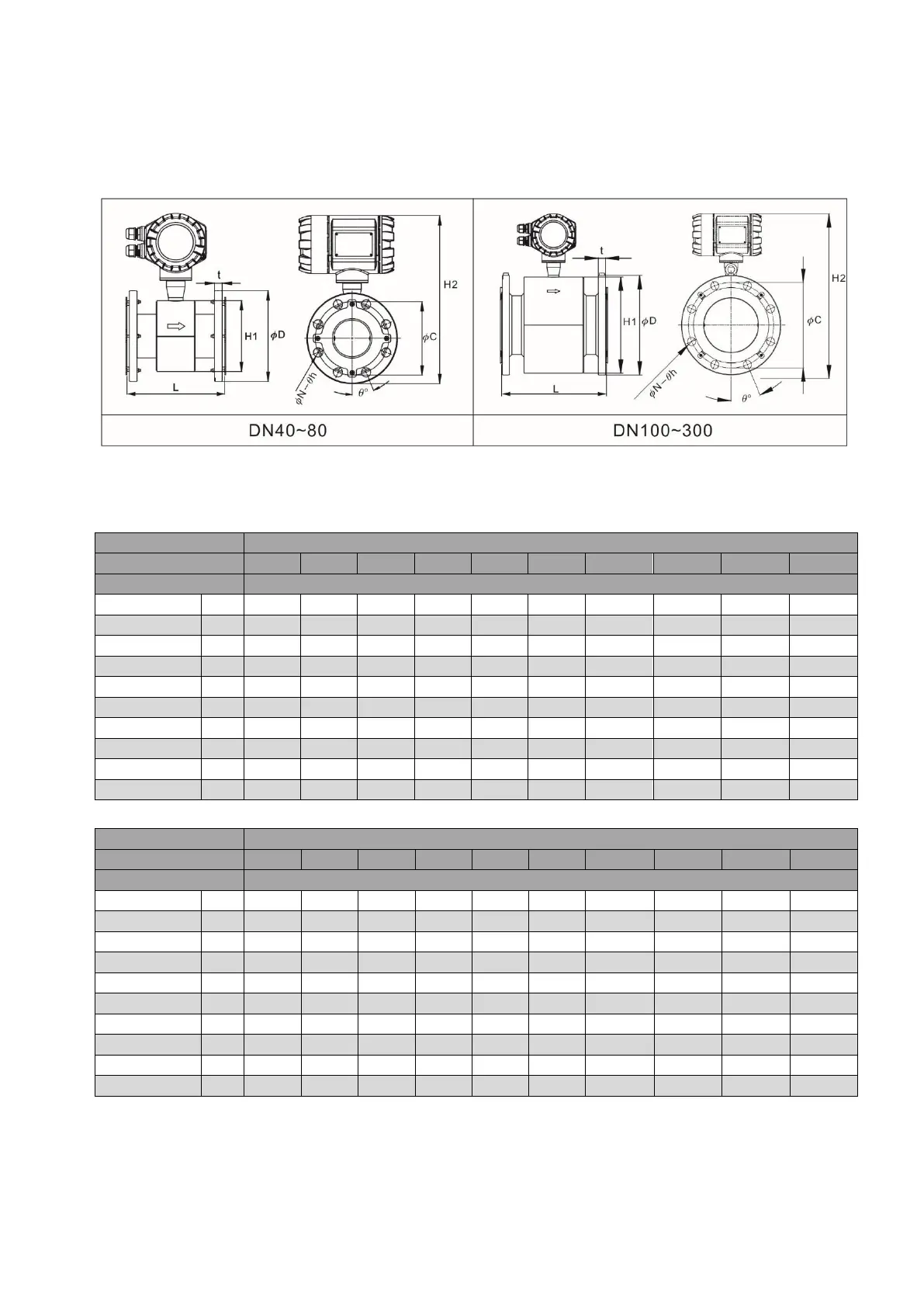 註:DN40~DN80 內襯保護(接地)環厚度 2mm 流量計總長度=L+4mmDN100~DN300 內襯保護(接地)環厚度 0.5mm
