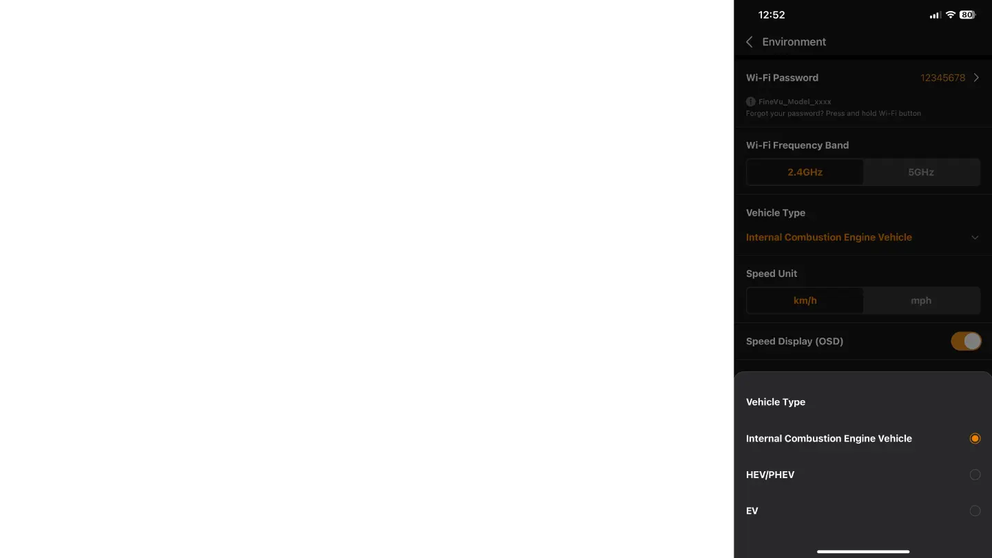 Speed Unit: Select the speed measurement unit you prefer, km/h or mph.