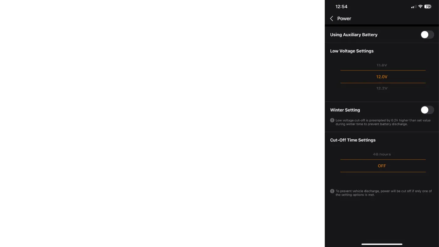 Winter Setting: Enable this setting to increase the low voltage threshold by 0.2V during the winter,