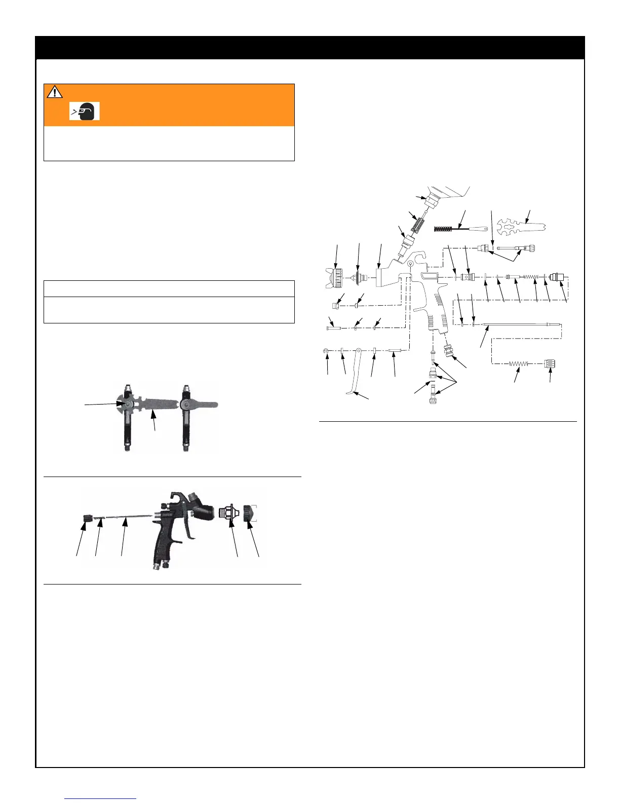 1. Rincer et nettoyer le pistolet avant un entretien. Voir page 9.