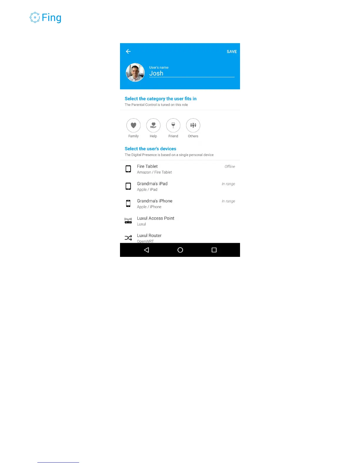 To allow Fing to adapt the parental control rules, tap on the family member category, such as