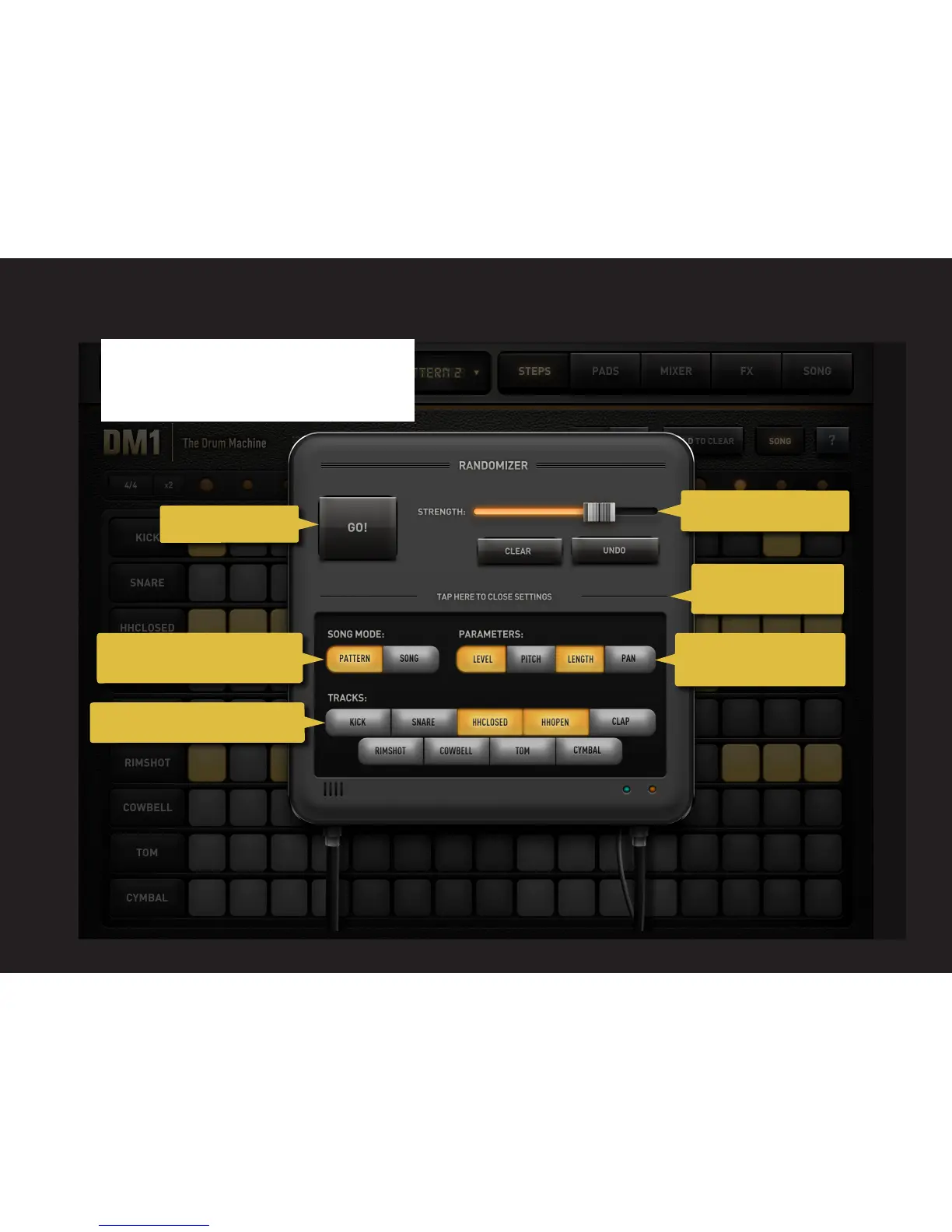 Tap GO! to randomize.