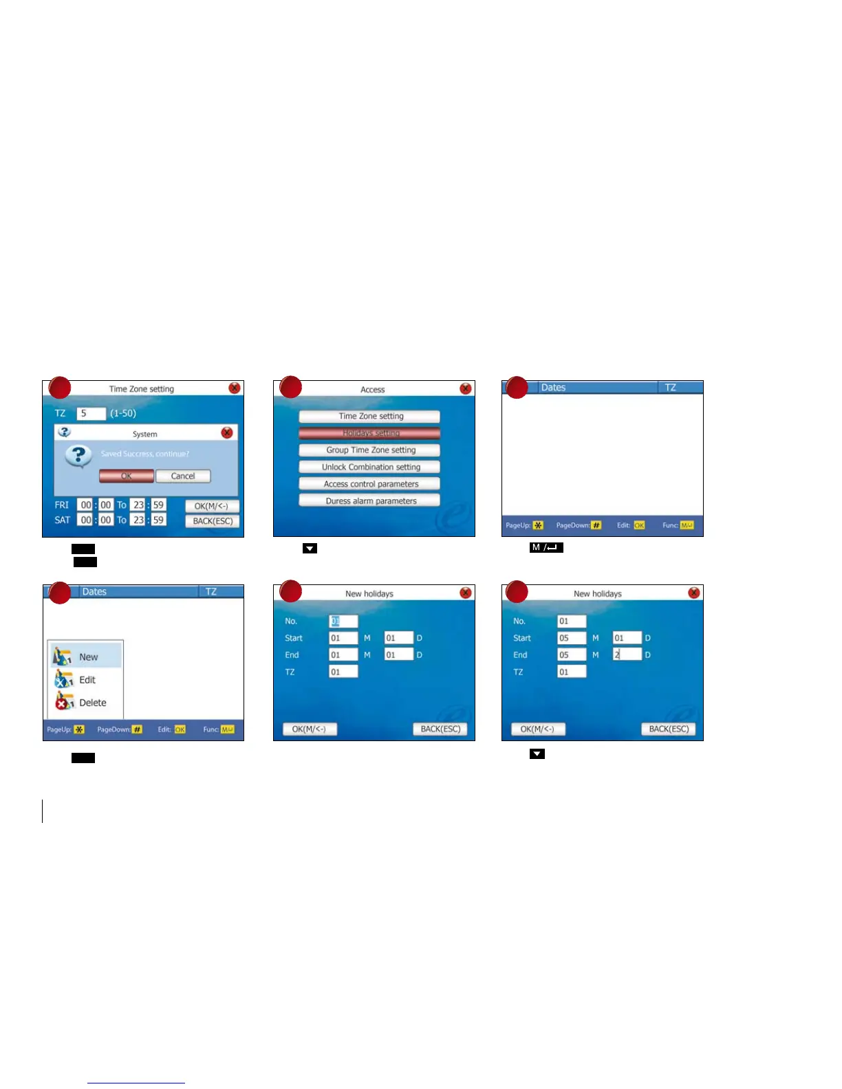 Press to choose Holiday settings.