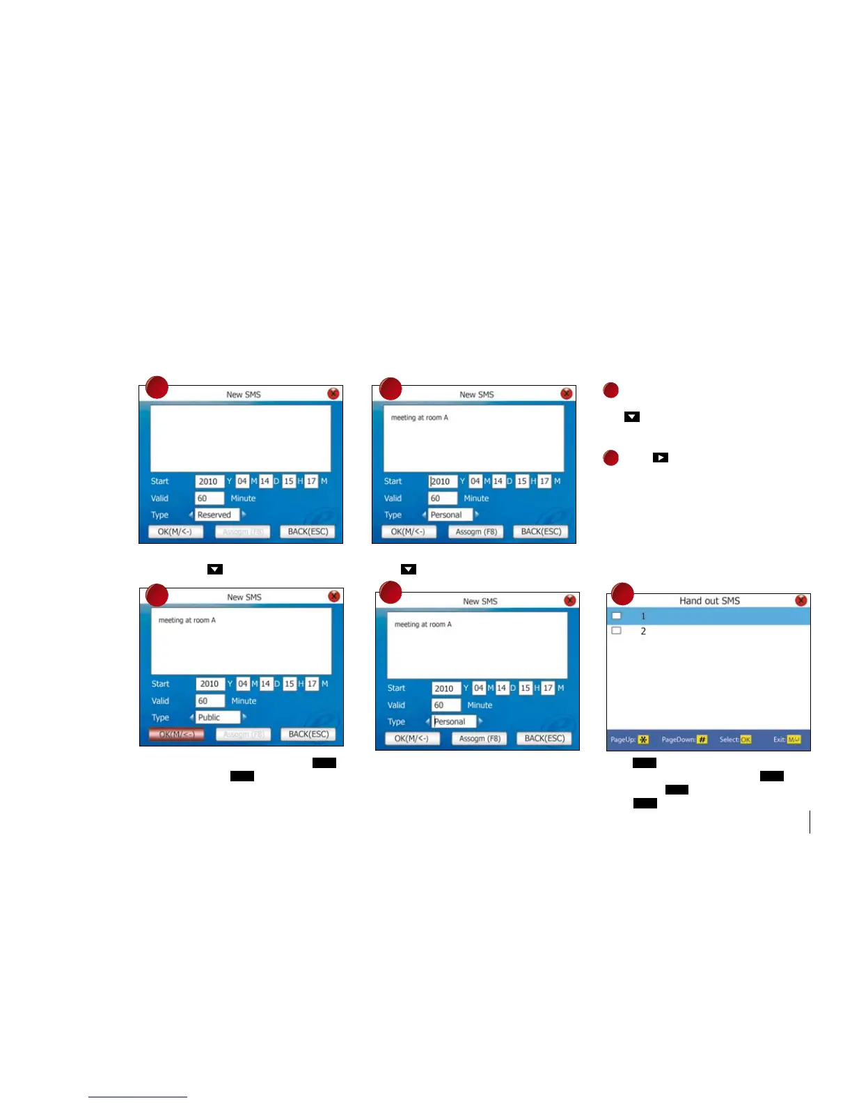 Enter the contents of short message by T9 input Enter the start time for message to be displayed.