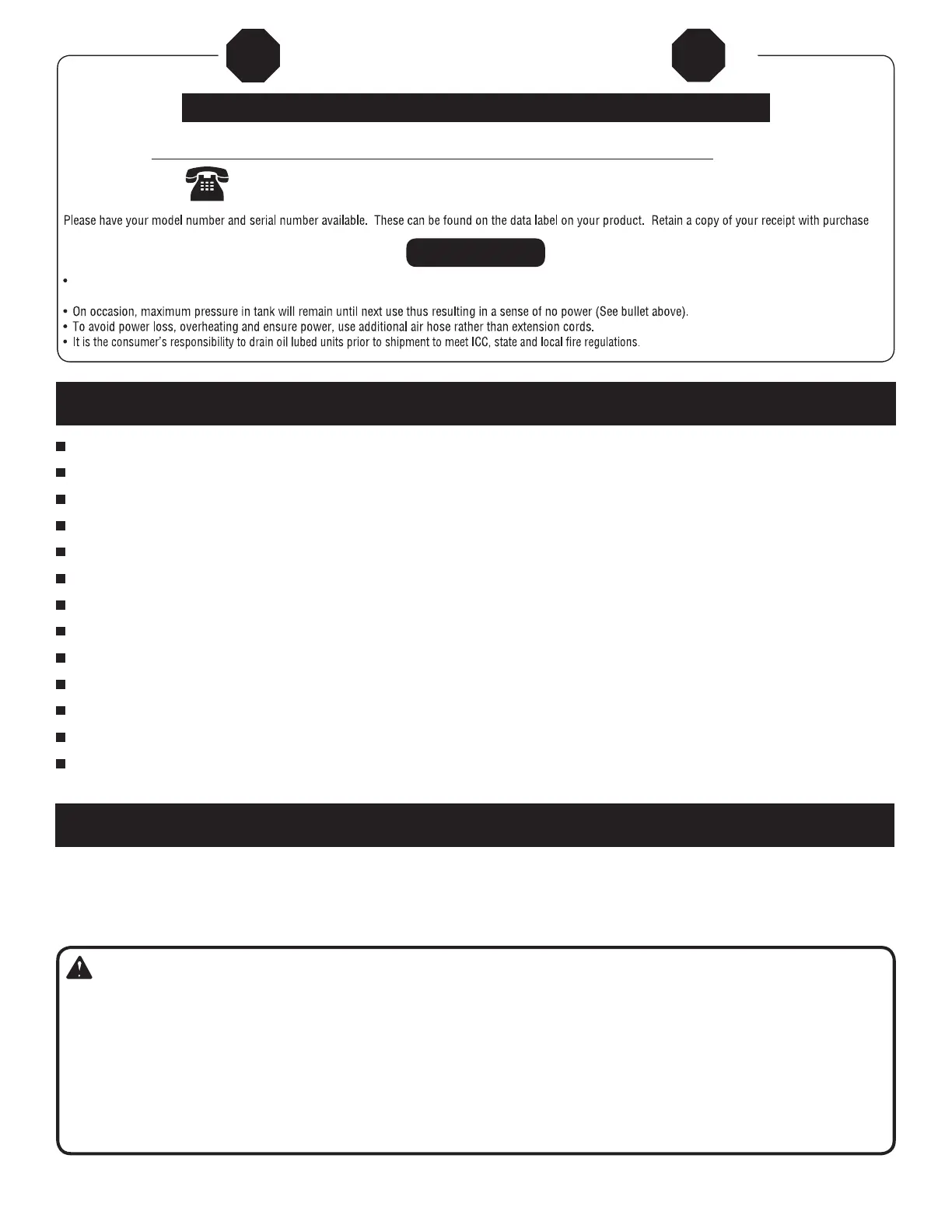 troubleshooting. To avoid unnecessary return to the store, simply call Compressor Support toll free for additional assistance.
