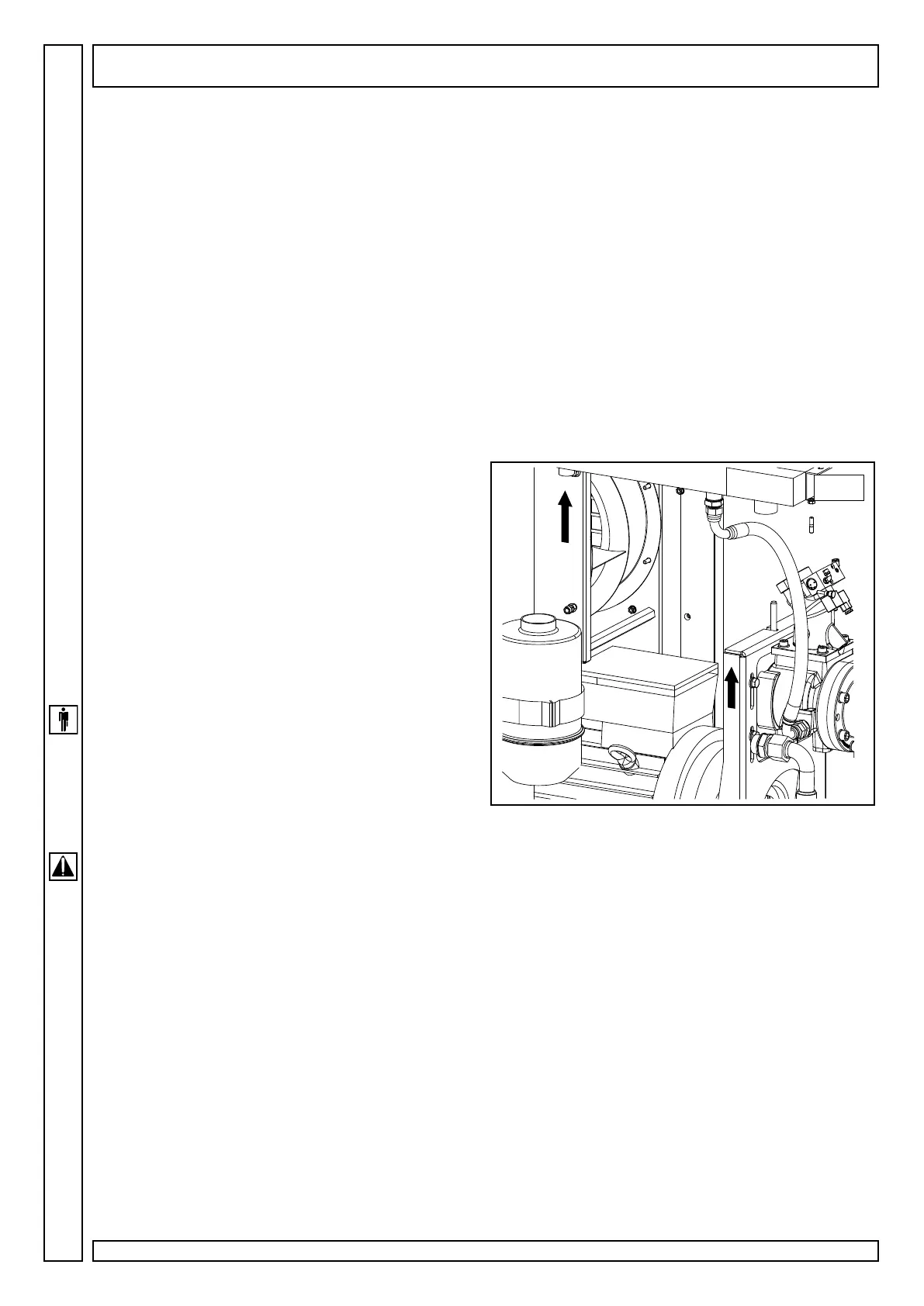 • Check the oil level in the tank: refer to section “Maintenance, oil control and topping up.” In the event of low oil level, top up