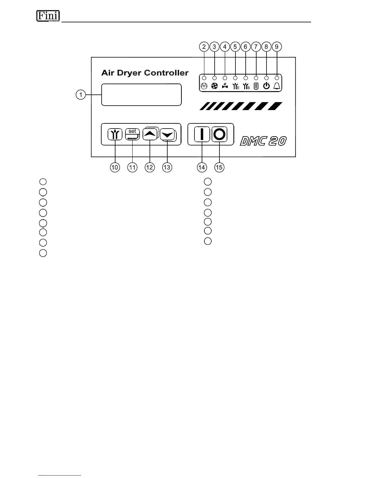 To switch OFF the dryer, keep the [15] button "Dryer Stop" pressed for at least 2 seconds.