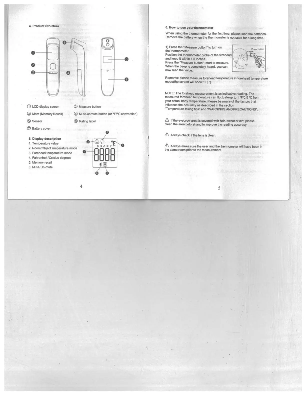 Finicare FC-IR202 - Display and Operation; Display Description; How to Use the Thermometer