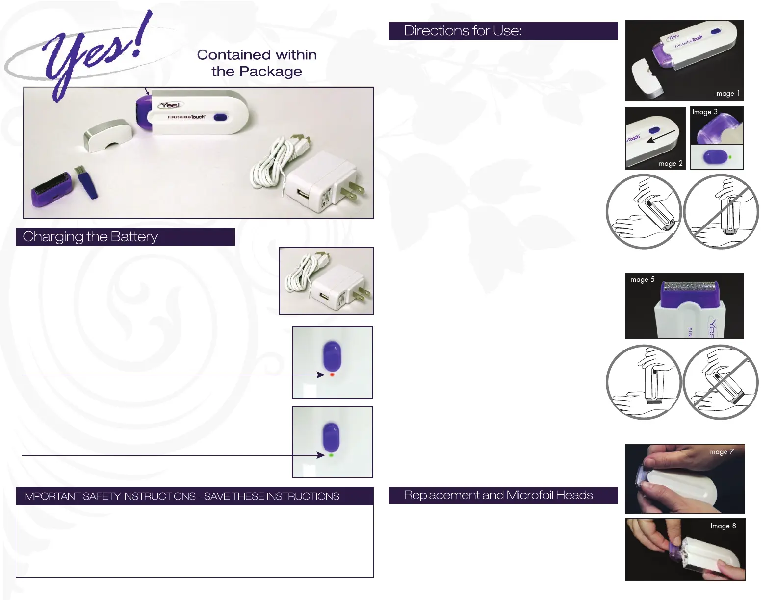 NOTE: Prior to first use, fully charge FT Yes for