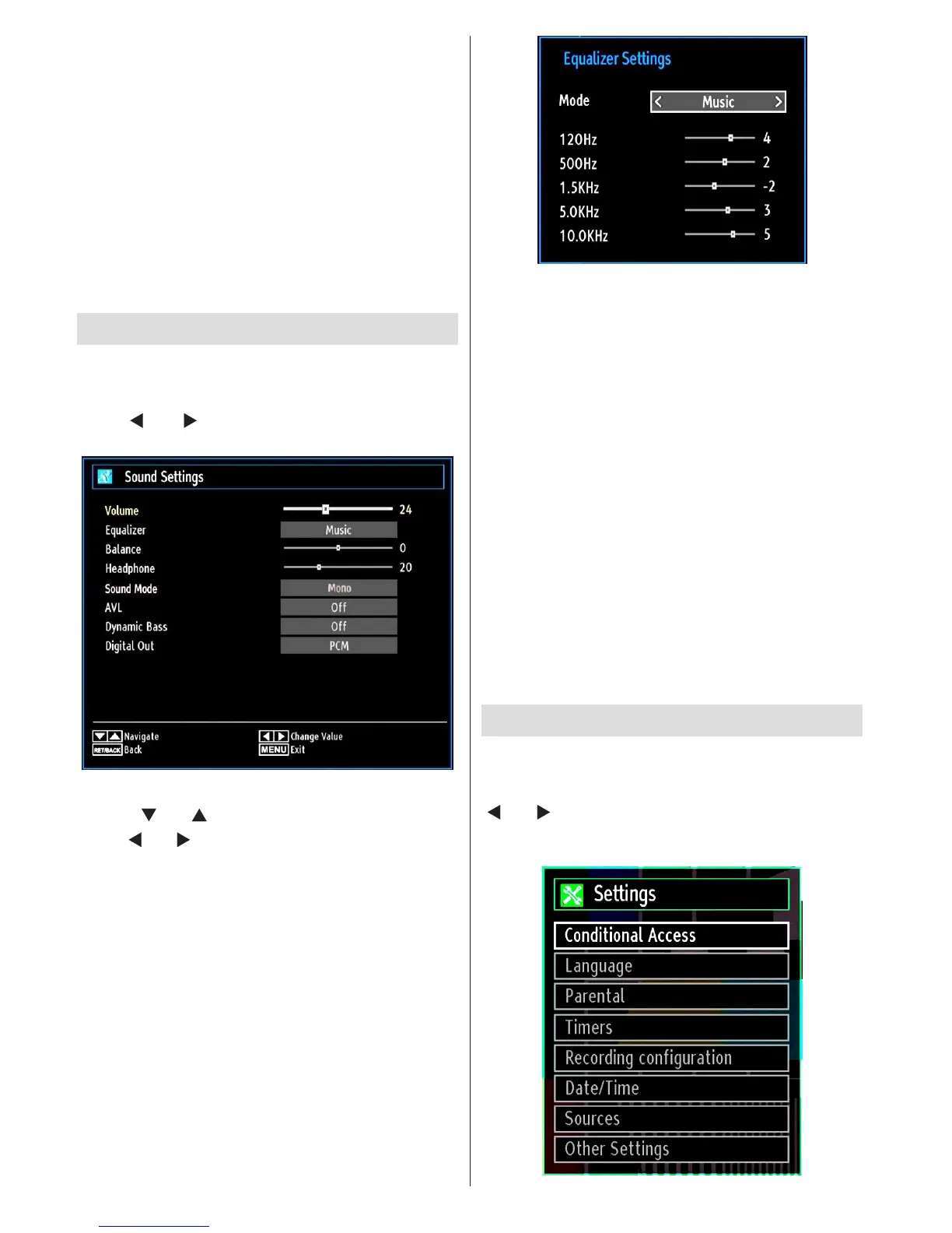 Note: Equalizer menu settings can be changed