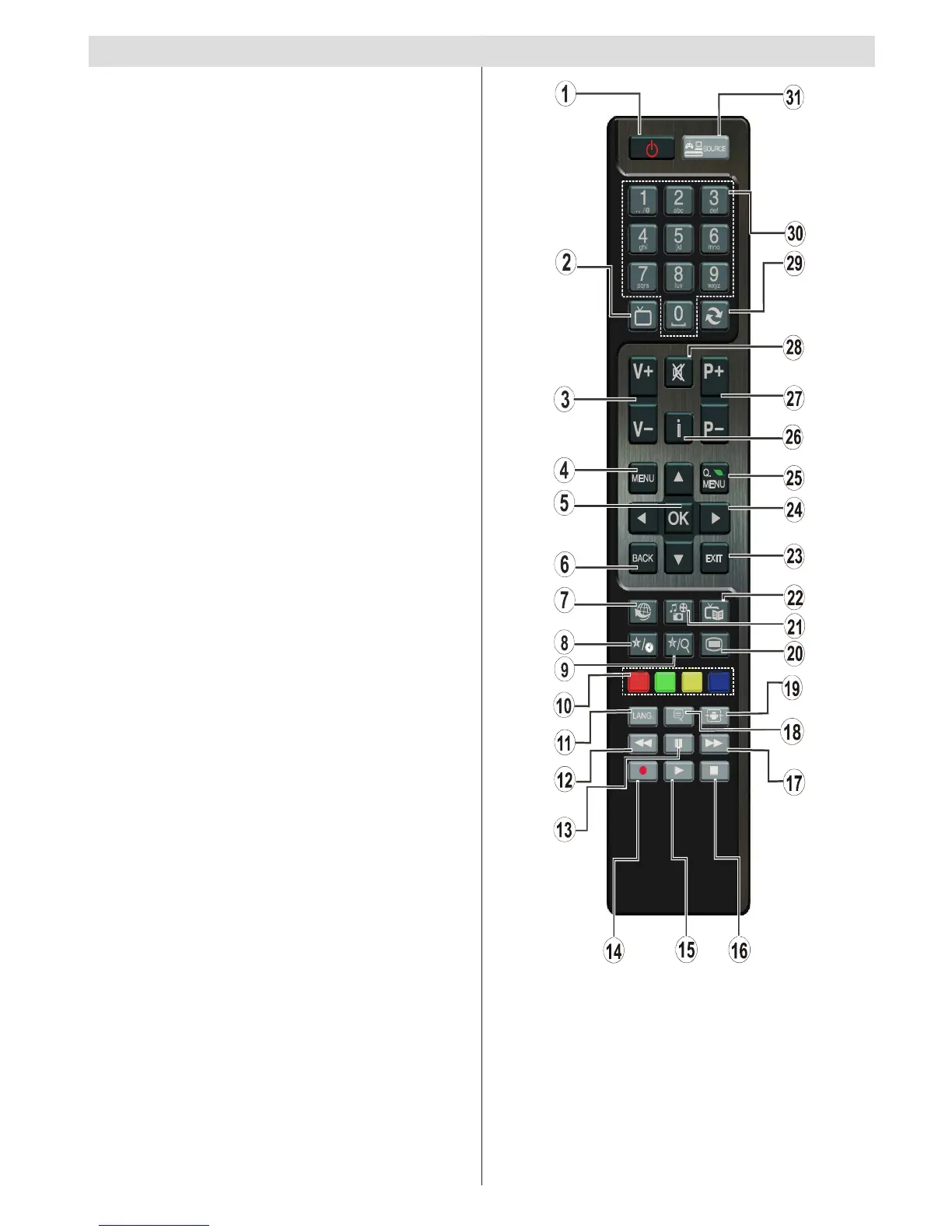 10. Coloured buttons (Red, Green, Yellow, Blue)