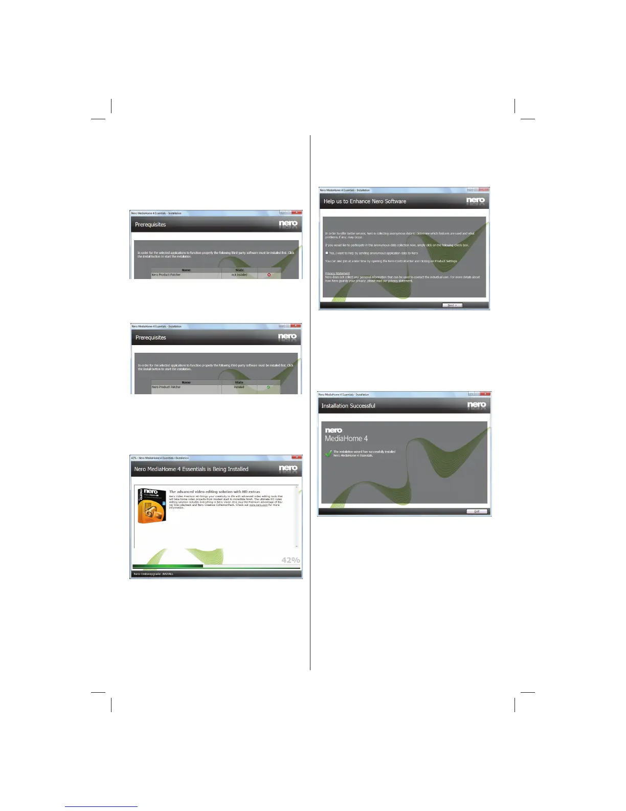 The Nero MediaHome installation wizard checks the