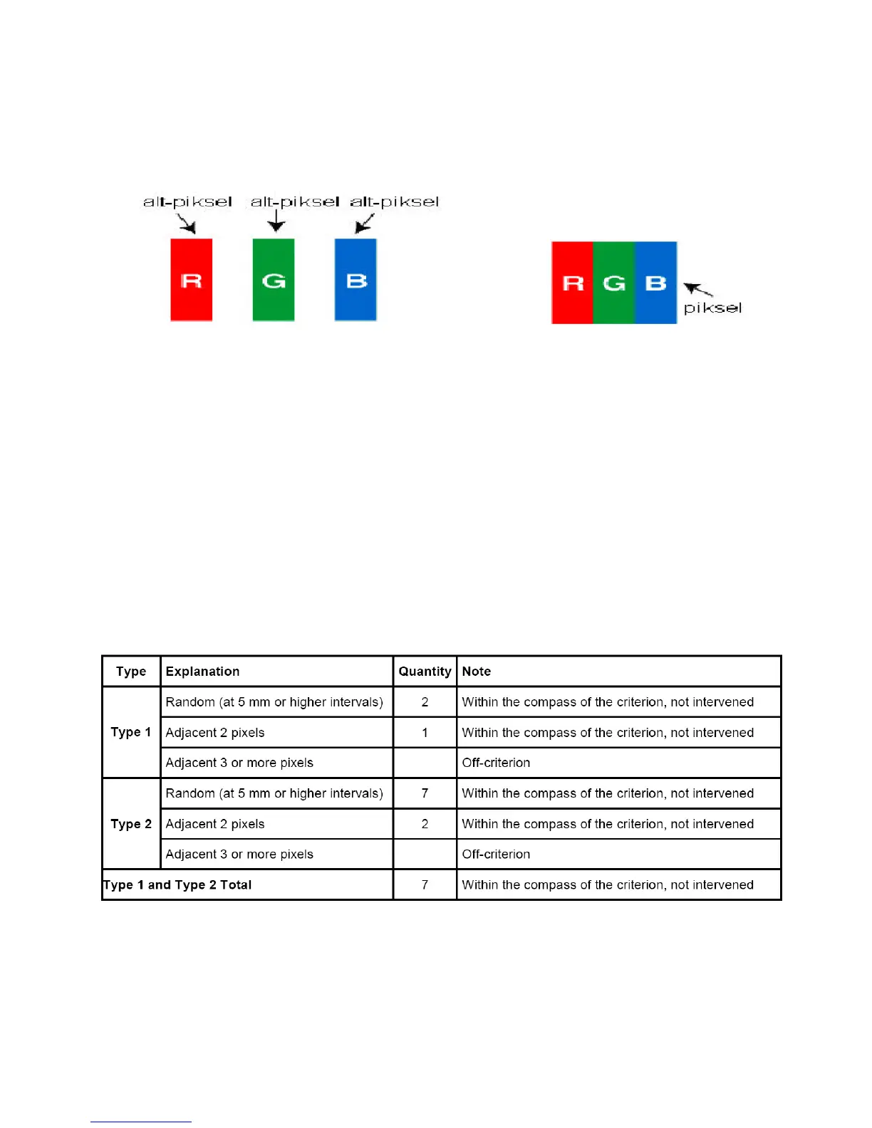 Type 1 : The sub-pixel lighting continuously (may be red, green or blue)