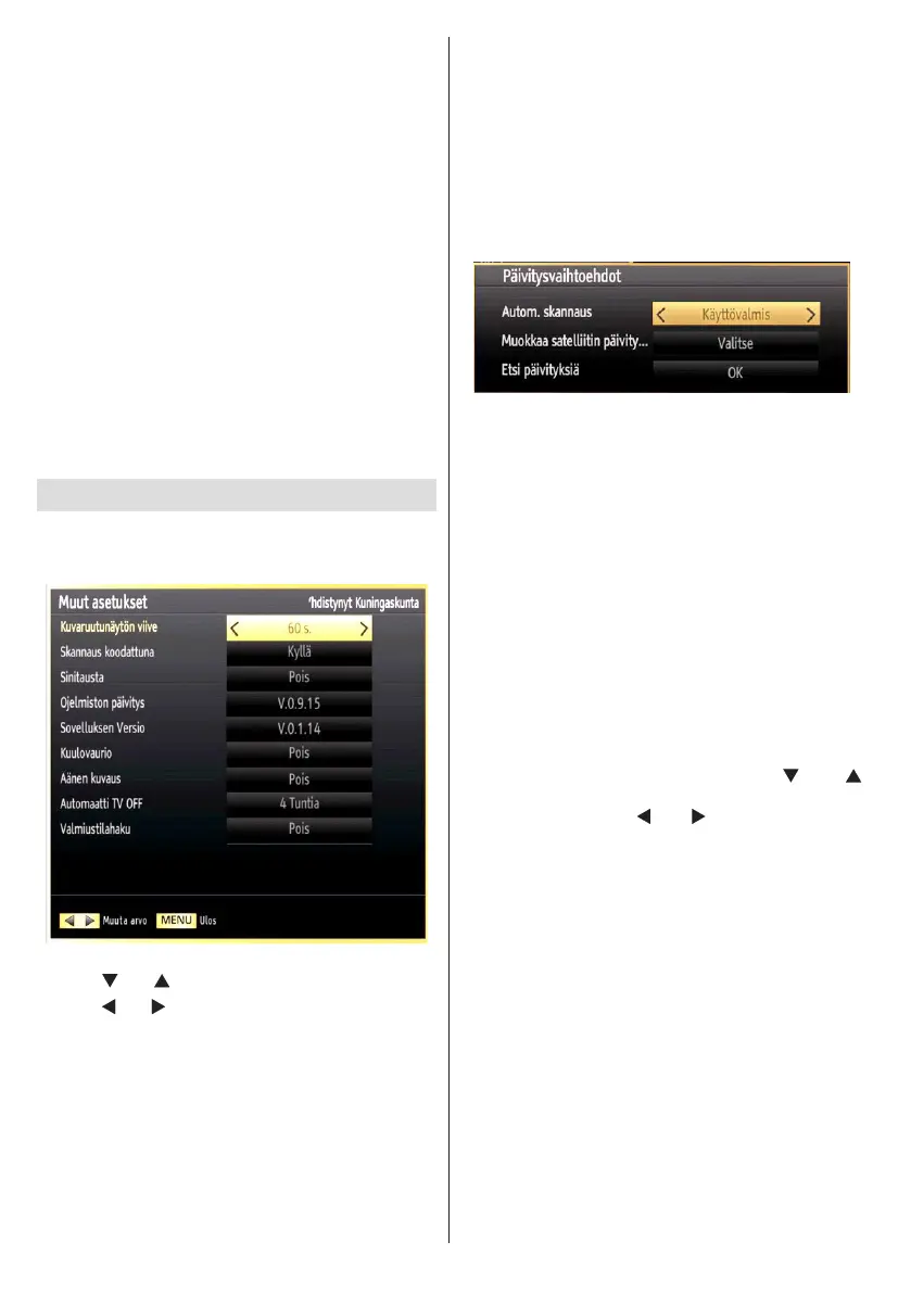 • Käytä “ ” tai “ ” -painikkeita valinnan asettamiseksi.