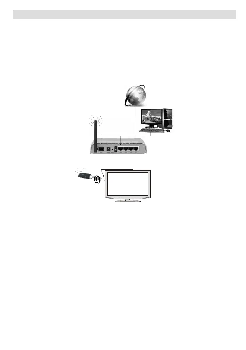 • Wireless LAN adaptor should be connected directly to the TV’s USB port. USB hubs are not supported.