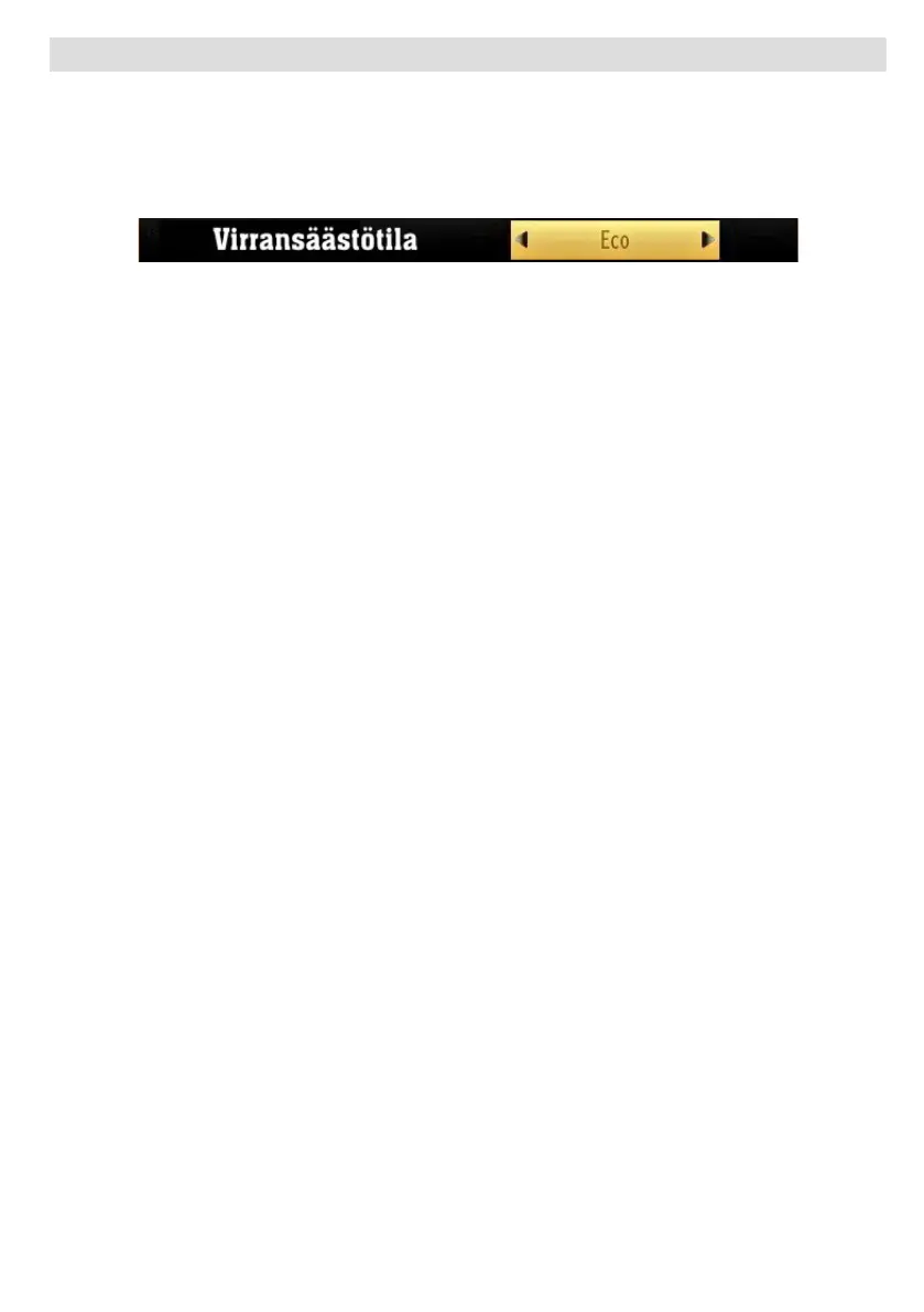 • Käytä Virransäästötilaa, joka sijaitsee Kuva-asetusvalikossa. Jos asetat Virransäästötilaksi Eco, TV kytkeytyy